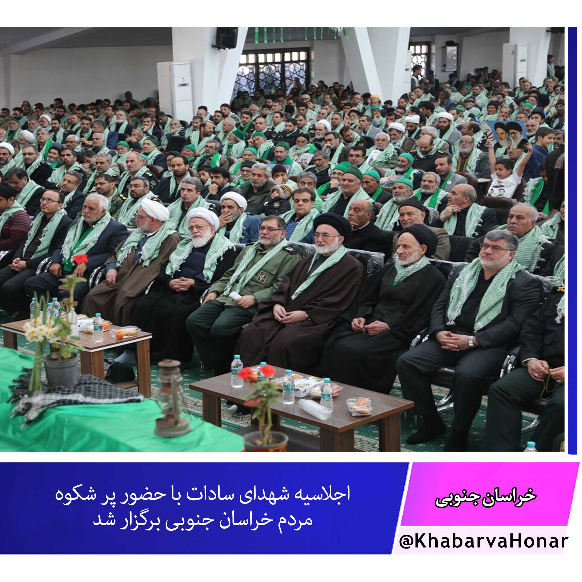اجلاسیه ۱۴۱ شهید سادات خراسان جنوبی، امروز پنجشنبه ۱۹ دی، همزمان با سالروز شهادت حضرت فاطمه زهرا(س) با حضور گسترده مردم، خانوادههای شهدا و مسئولان در حسینیه جماران بیرجند برگزار شد.