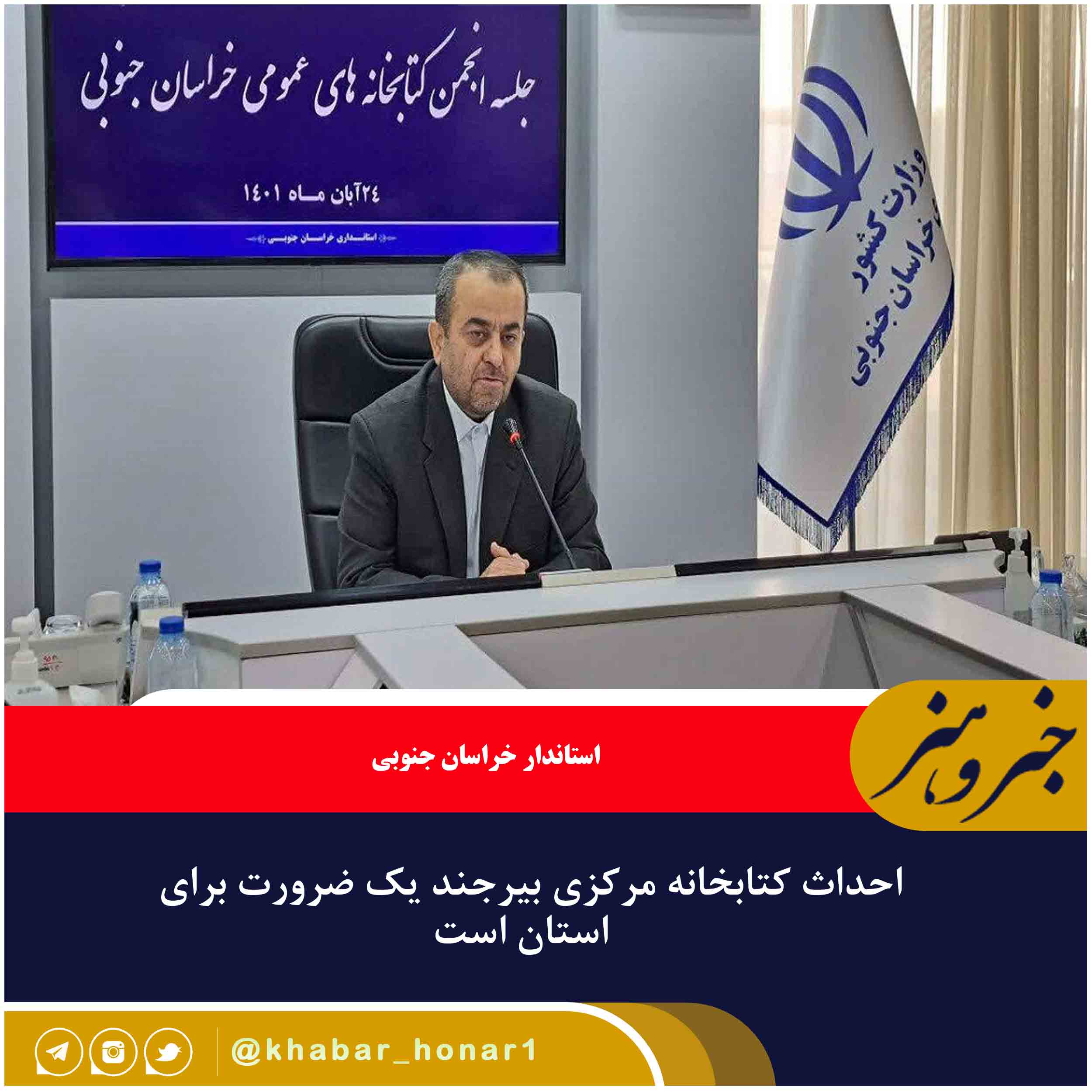 استاندار خراسان جنوبی گفت: احداث کتابخانه مرکزی بیرجند یک ضرورت برای استان است و تامین اعتبار برای این پروژه در سفر دوم رئیس جمهور پیشبینی شده اما از طریق معاونت توسعه مدیریت و منابع وزارت فرهنگ و ارشاد اسلامی هم باید پیگیری شود.