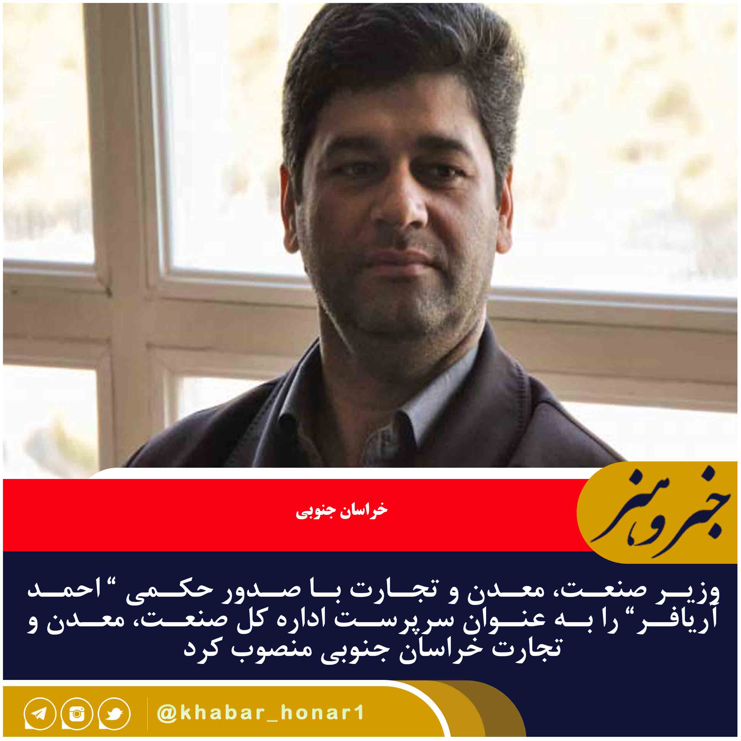 وزیر صنعت، معدن و تجارت با صدور حکمی ” احمد آریافر” را به عنوان سرپرست اداره کل صنعت، معدن و تجارت خراسان جنوبی منصوب کرد.