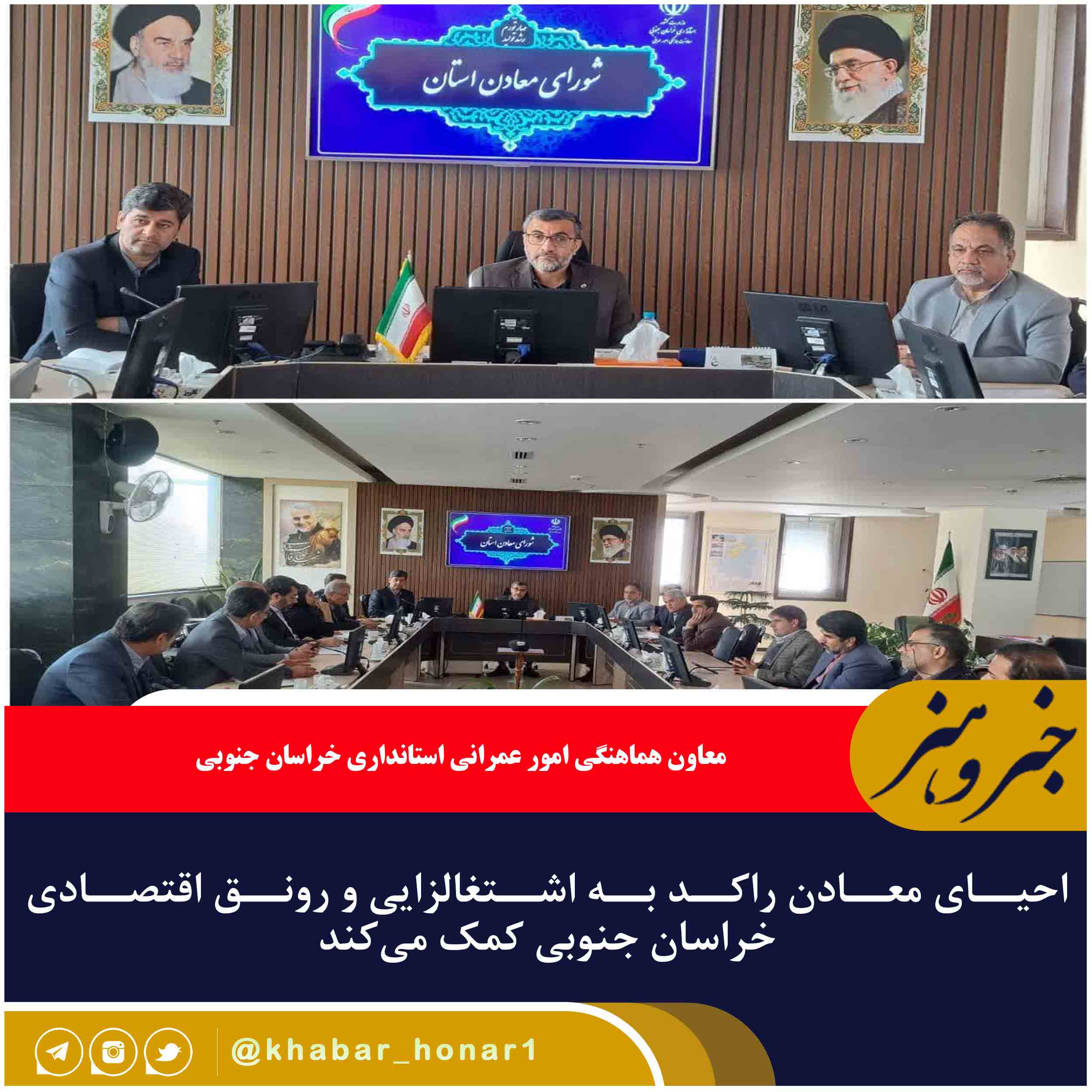 ?معاون هماهنگی امور عمرانی استانداری خراسان جنوبی گفت: احیای معادن راکد به اشتغالزایی و رونق اقتصادی خراسان جنوبی کمک میکند.