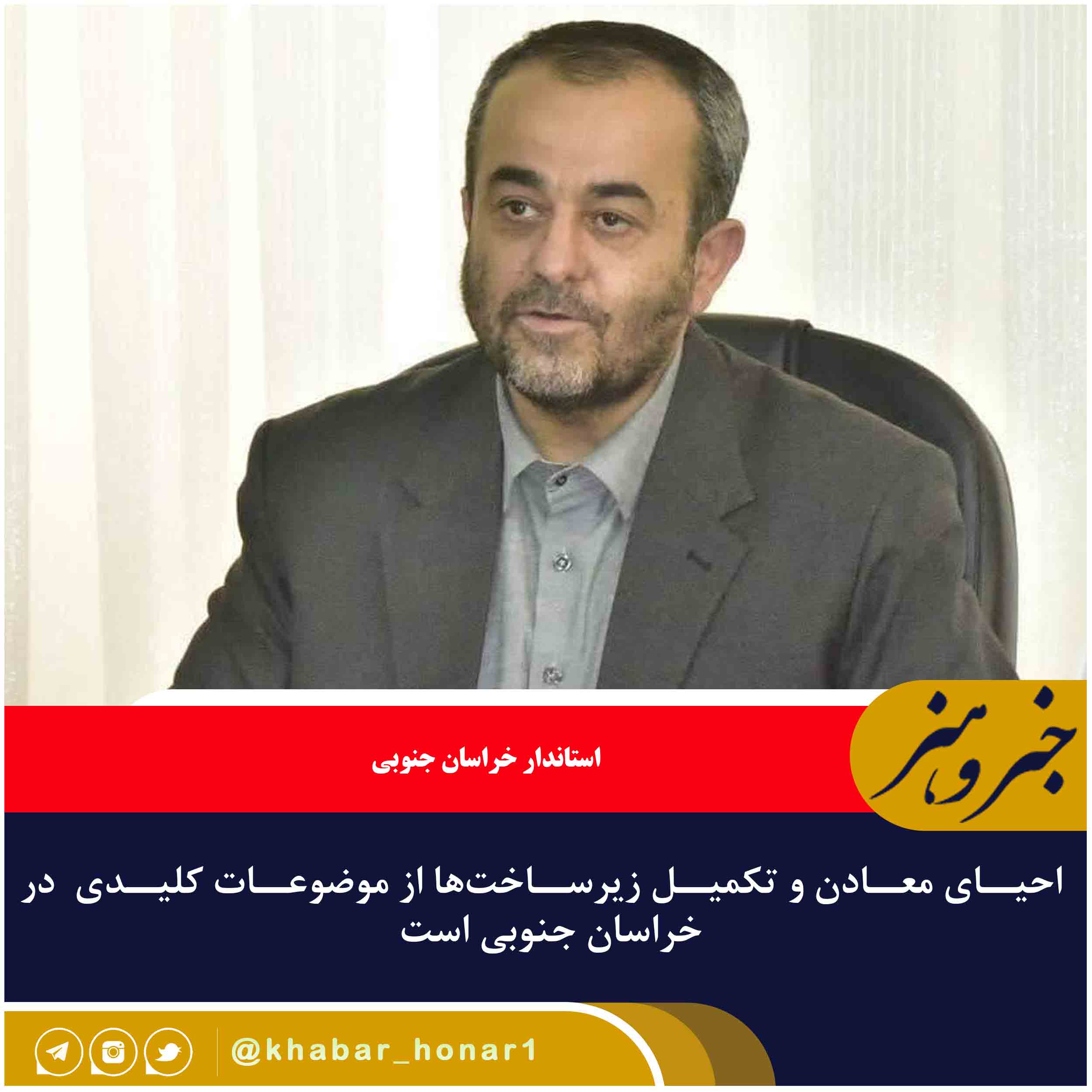 استاندار خراسان جنوبی گفت: احیای معادن و تکمیل زیرساختها از موضوعات کلیدی ما در استان است که سال گذشته در دستور کار ویژه مدیران قرار داشته و امسال نیز از اولویتهای اصلی است.