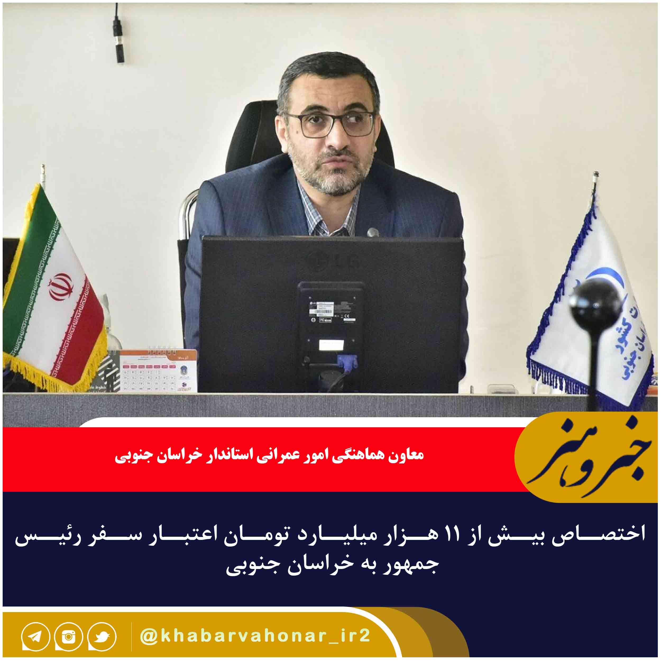 معاون هماهنگی امور عمرانی استاندار خراسان جنوبی، حجم اعتبارات مصوبات سفر رئیس جمهور به این استان را بیش از ۱۱ هزار میلیارد تومان اعلام کرد و گفت: بیش از ۱۳۲ درصد اعتبارات سال ۱۴۰۰ معادل ۹۵۰ میلیارد تومان محقق شده و تصمیم دولت برای اجرای مصوبات سفر نیز جدی است.