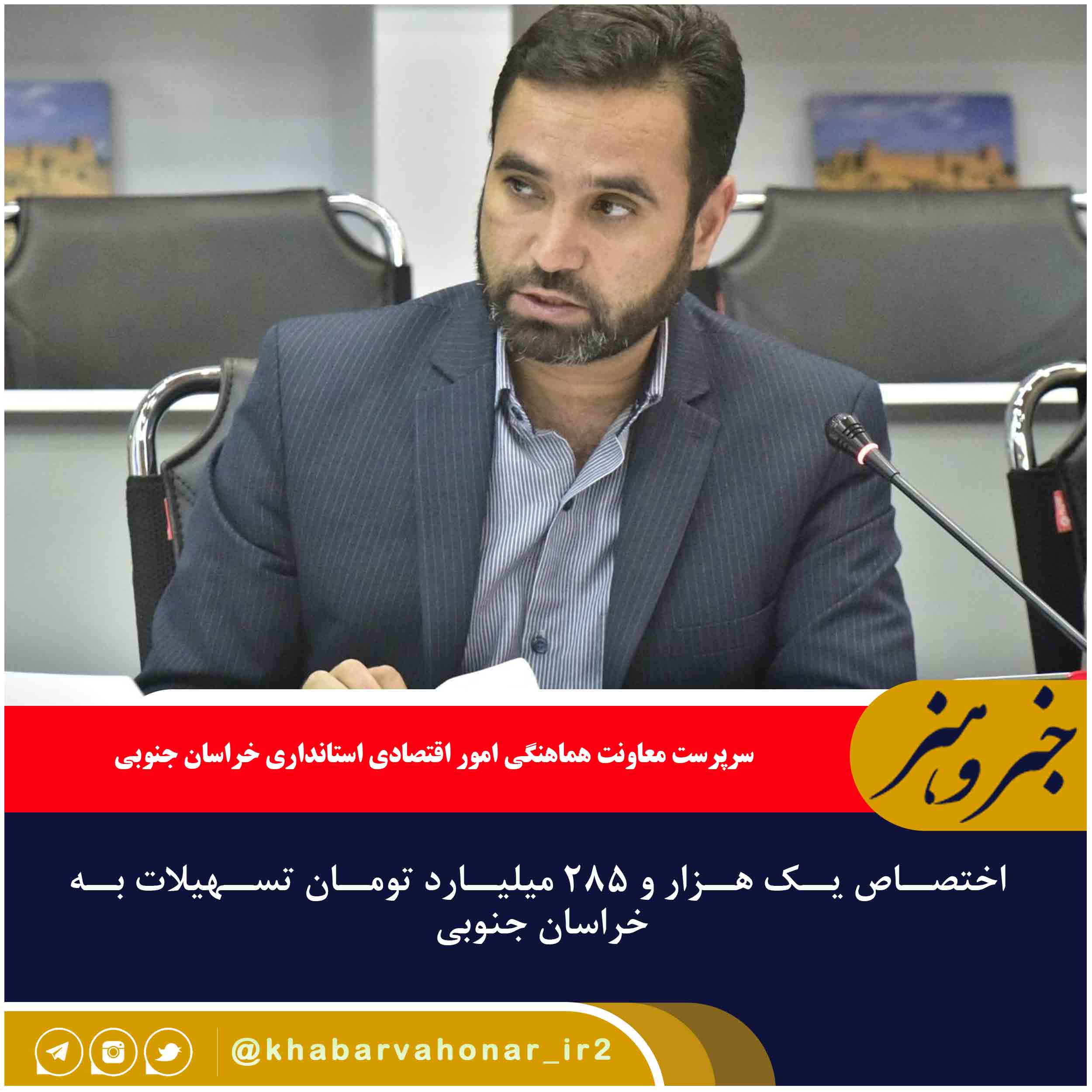 سرپرست معاونت هماهنگی امور اقتصادی استانداری خراسان جنوبی گفت: از محل جزء ۲ بند “ب” تبصره ۱۶ قانون بودجه ۱۴۰۱، هزار و ۲۸۵ میلیارد تومان تسهیلات به استان اختصاص یافت که براساس شاخصهای جمعیت و نرخ بیکاری بین شهرستانهای استان توزیع خواهد شد.