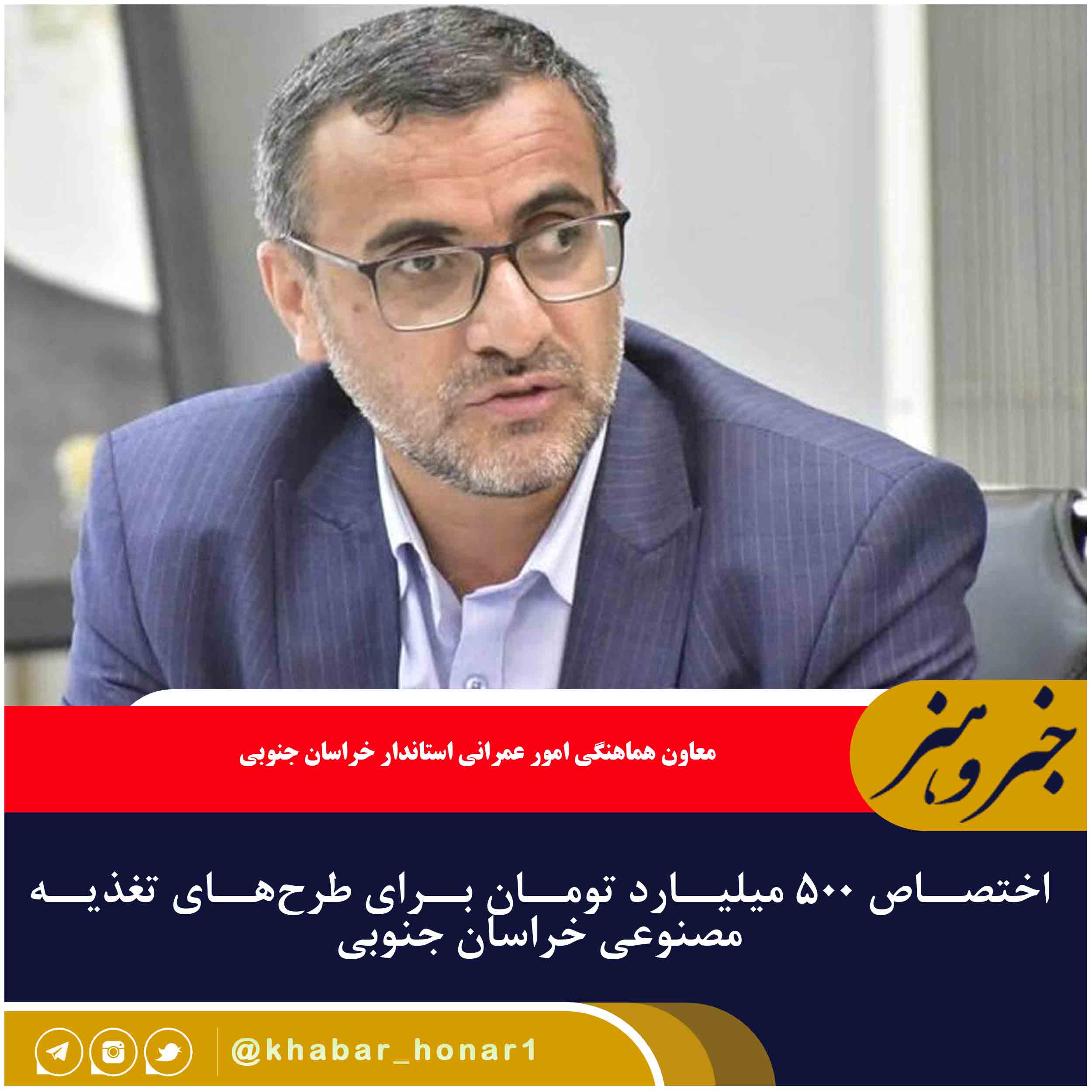 معاون هماهنگی امور عمرانی استاندار خراسان جنوبی گفت: اجرای طرح تغذیه مصنوعی یکی از راهکارهای مدیریت آب در استان است که در سفر رئیس جمهور بیش از ۵۰۰ میلیارد تومان اعتبار برای اجرای این طرحها اختصاص یافته است.