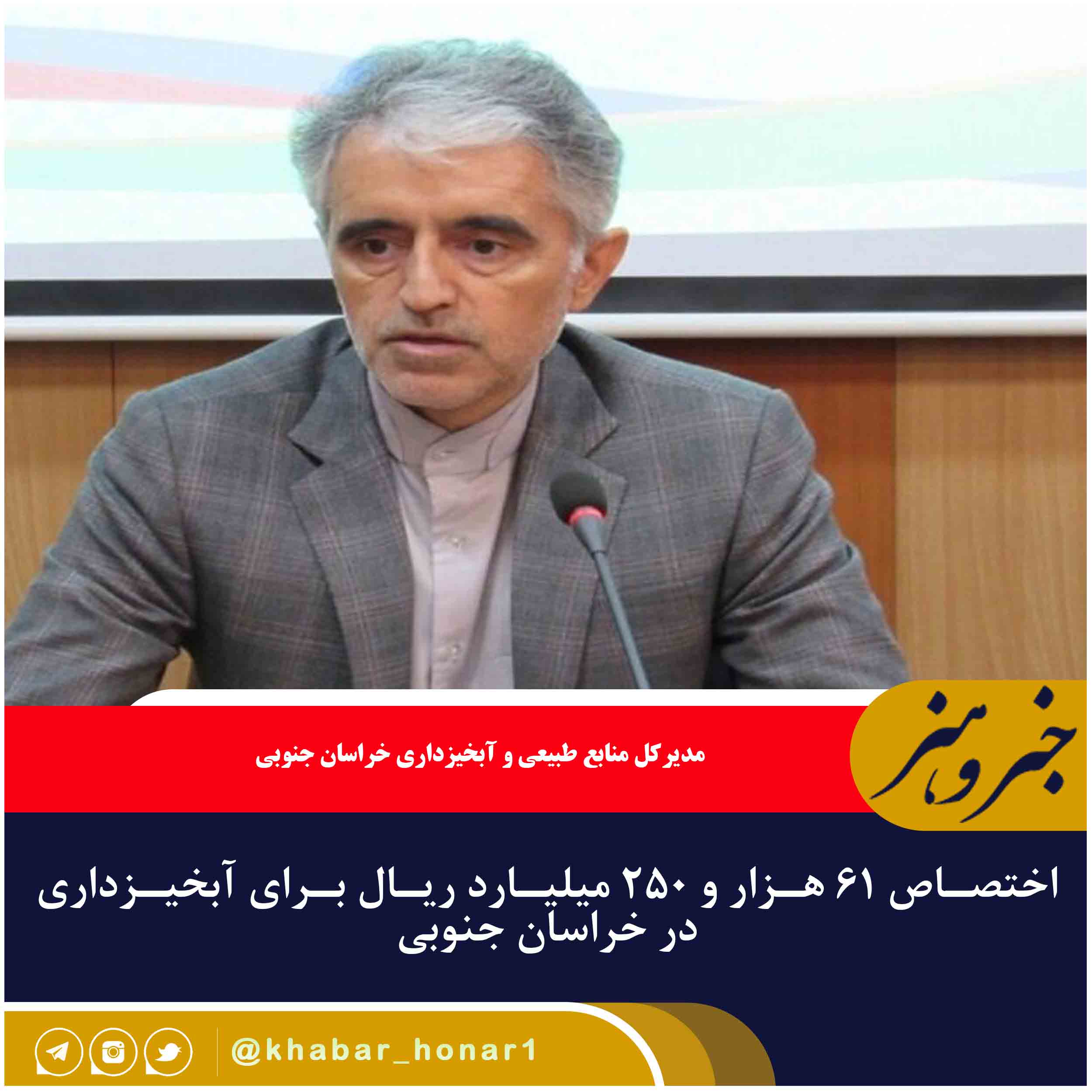 مدیرکل منابع طبیعی و آبخیزداری خراسان جنوبی گفت: از محل تفاهمنامه اجرای طرح ملی آبخیز تا جالیز بین قرارگاه امام حسن مجتبی (ع) و وزارت جهاد کشاورزی، ۶۱ هزار و ۲۵۰ میلیارد ریال اعتبار به اجرای طرحهای آبخیزداری این استان اختصاص یافت.