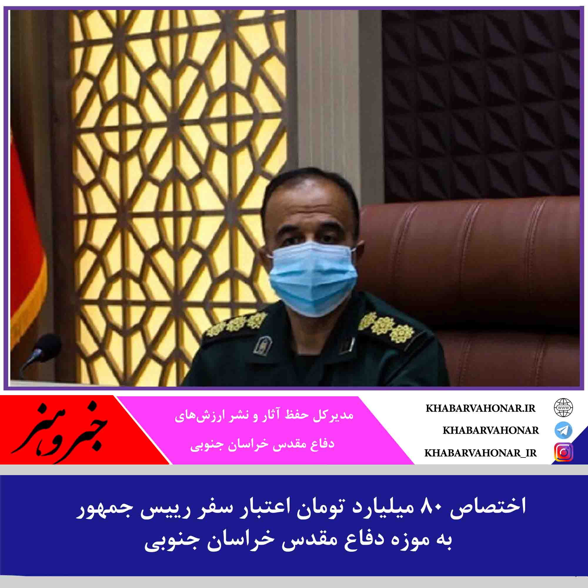 مدیرکل حفظ آثار و نشر ارزشهای دفاع مقدس خراسان جنوبی گفت: ۸۰ میلیارد تومان اعتبار از محل اعتبارات سفر رییس جمهور به مرکز فرهنگی و موزه دفاع مقدس خراسان جنوبی اختصاص پیدا کرد که در سه سال تخصیص خواهد یافت.