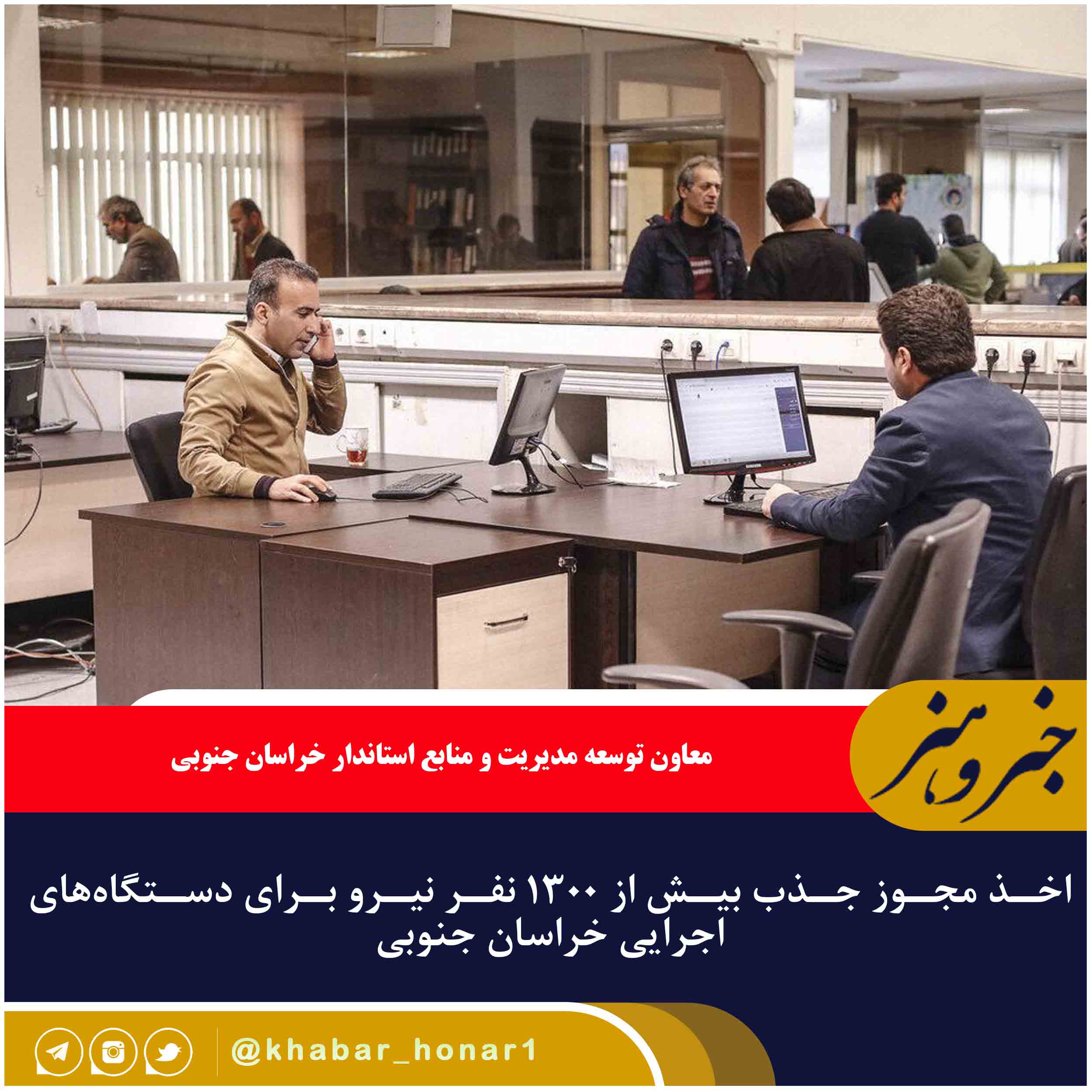 معاون توسعه مدیریت و منابع استاندار خراسان جنوبی از اخذ مجوز جذب بیش از هزار و ۳۰۰ نفر نیرو به منظور تأمین نیازهای برخی دستگاههای اجرایی استان خبر داد.