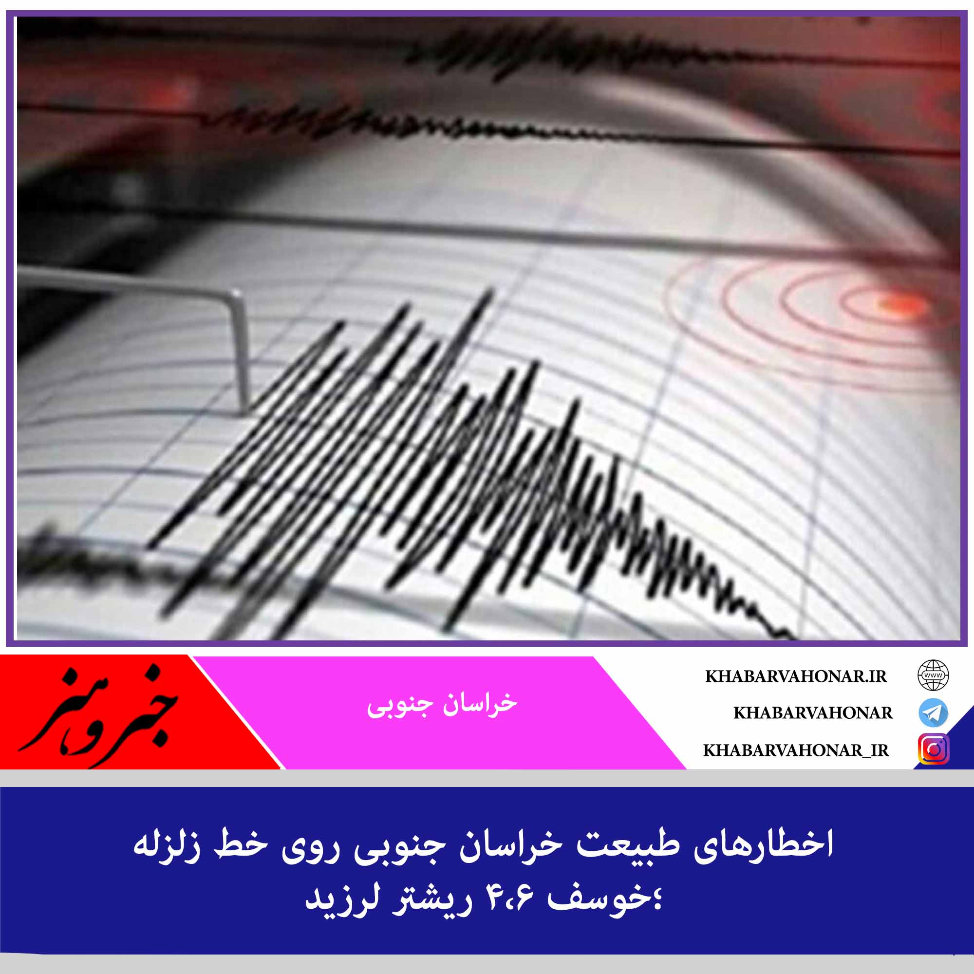 زلزلهای به بزرگی ۴.۶ در مقیاس امواج درونی زمین (ریشتر) ساعت ۷ دقیقه و ۳۸ ثانیه بامداد امروز (یکشنبه) خوسف در استان خراسان جنوبی را لرزاند.