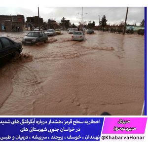 مدیر کل مدیریت بحران استاندار خراسان جنوبی به فرمانداران شهرستان‌های نهبندان ، خوسف ، بیرجند ، سربیشه ، درمیان و طبس درباره اوج گرفتن بارش ها اخطاریه سطح قرمز صادر کرد.