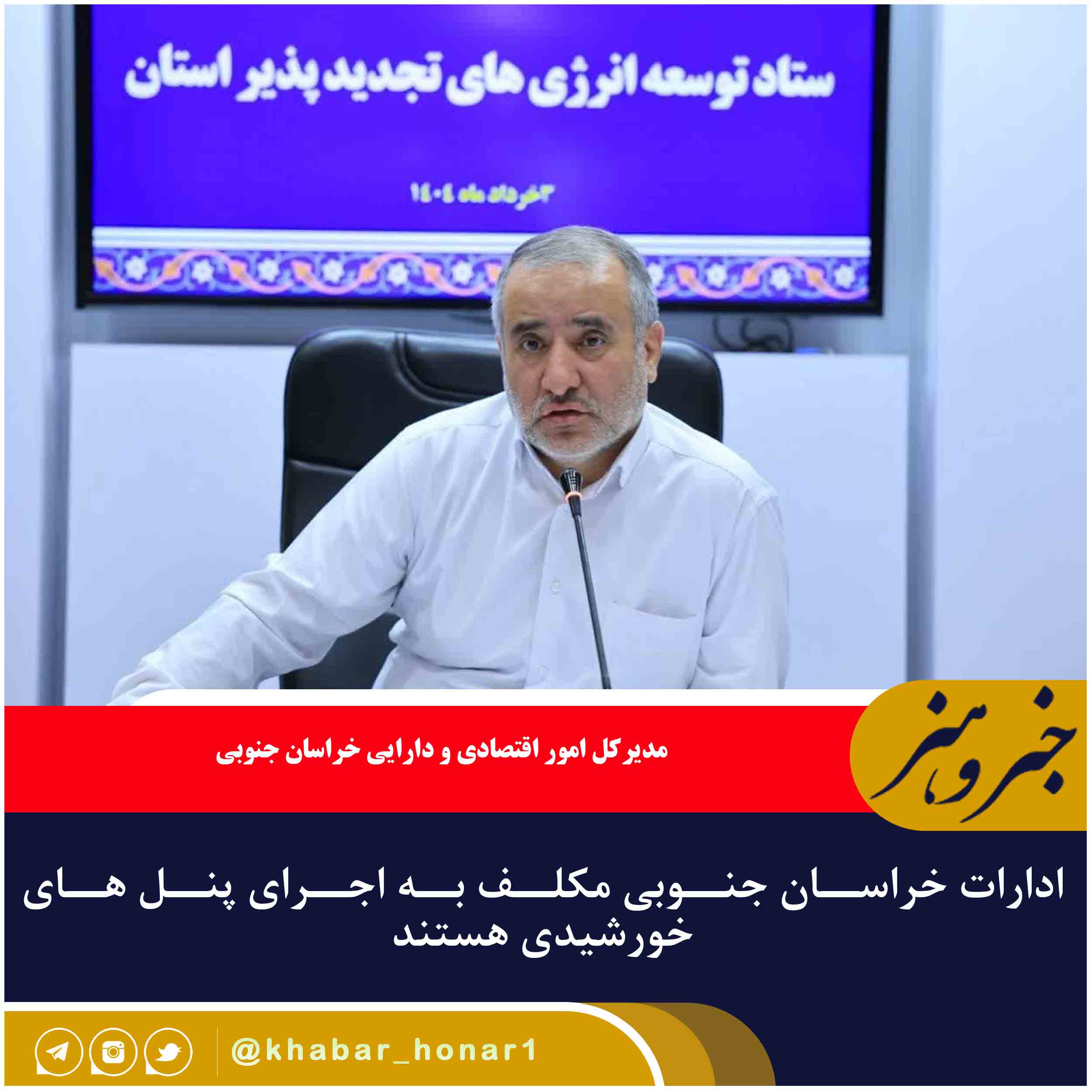 استاندار خراسان جنوبی با قدردانی از صدا و سیما برای اطلاعرسانی در زمینه انرژیهای تجدیدپذیر، گفت: پخش خبر نصب پنلهای خورشیدی بر روی پشت بام ادارات در اخبار شبانگاهی، اتفاق بسیار مبارکی بود و مورد استقبال بسیاری از استانهای دیگر قرار گرفت.