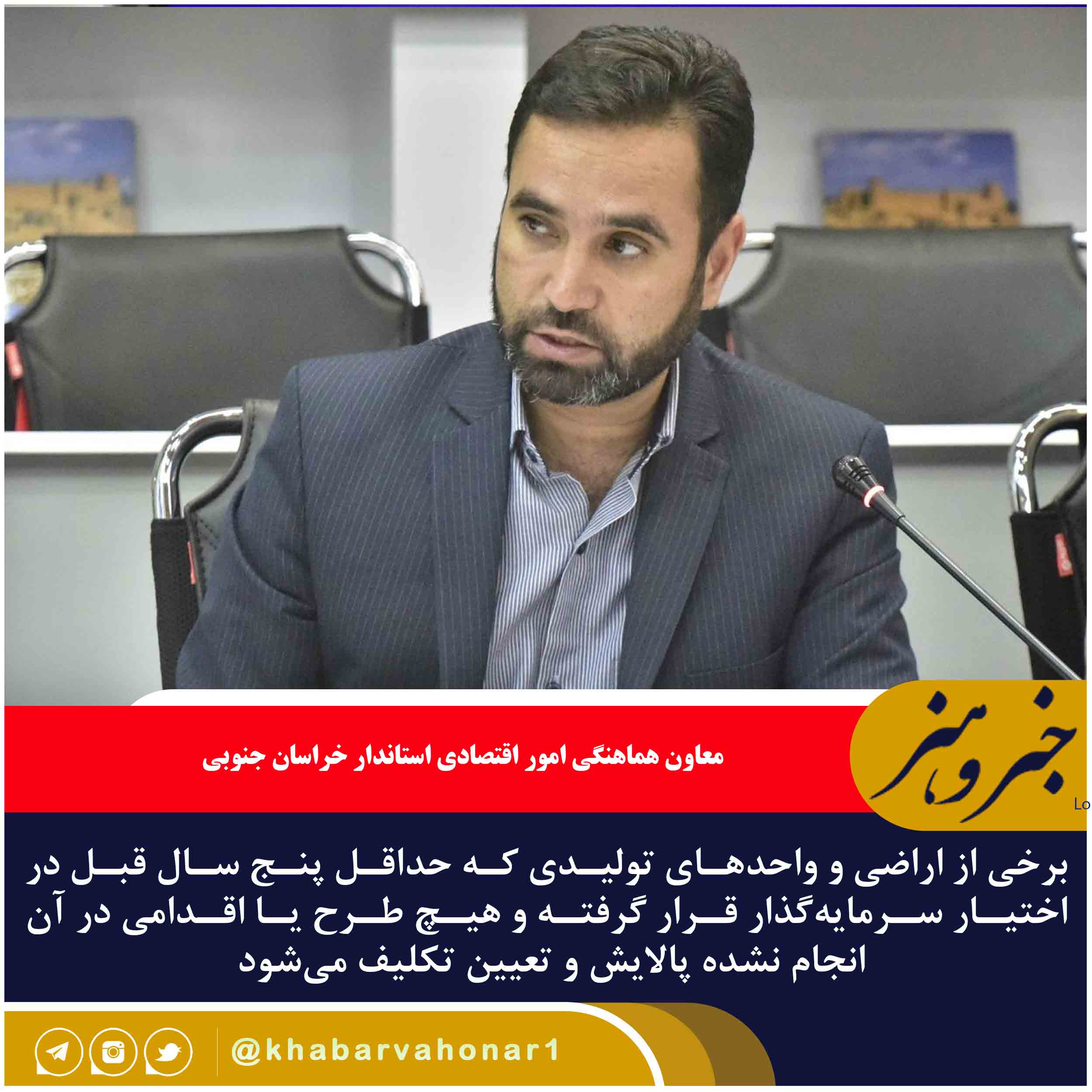 معاون هماهنگی امور اقتصادی استاندار خراسان جنوبی گفت: برخی از اراضی و واحدهای تولیدی که حداقل پنج سال قبل در اختیار سرمایهگذار قرار گرفته و هیچ طرح یا اقدامی در آن انجام نشده پالایش و تعیین تکلیف میشود.