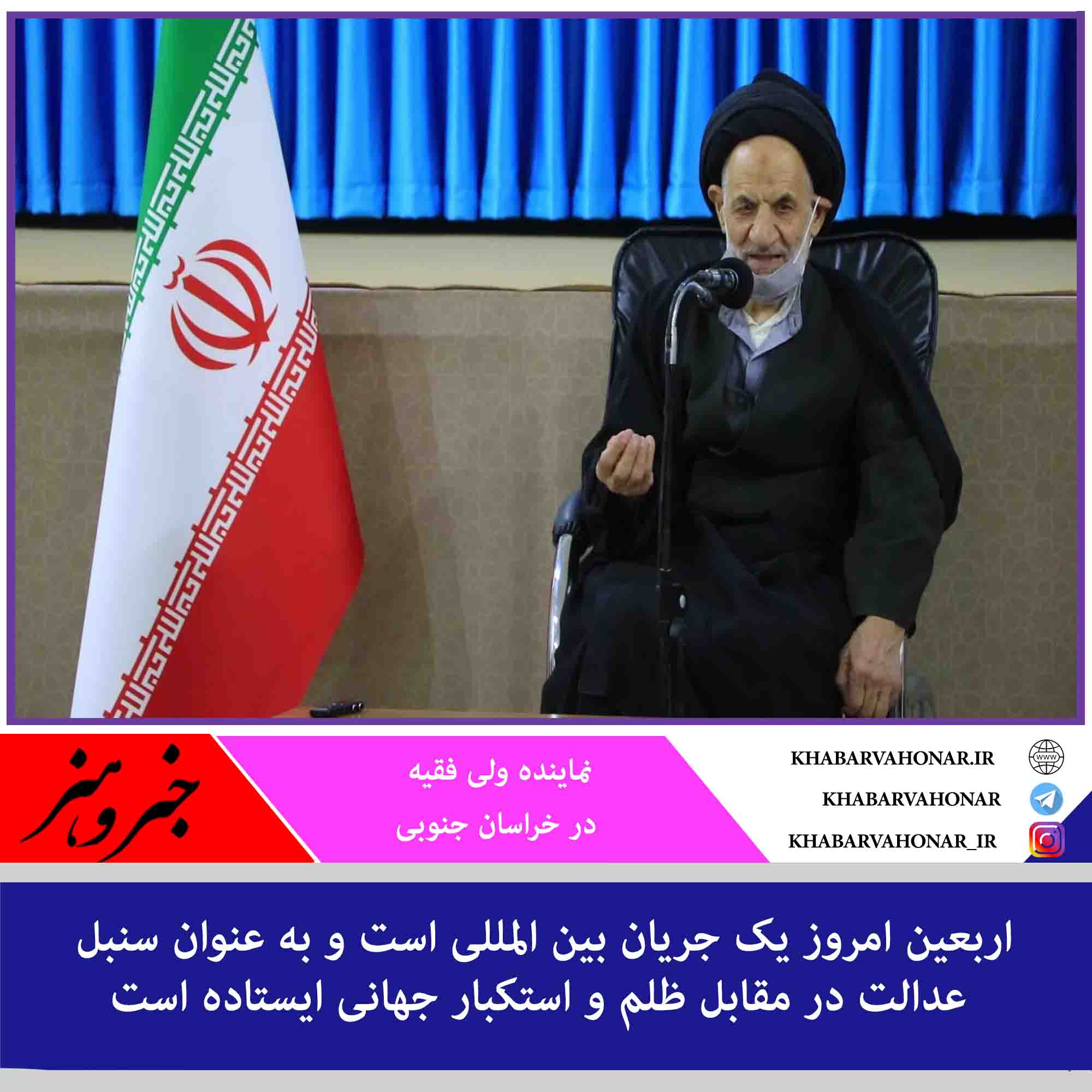 نماینده ولی فقیه در خراسان جنوبی: اربعین امروز یک جریان بین المللی است و به عنوان سنبل عدالت در مقابل ظلم و استکبار جهانی ایستاده است