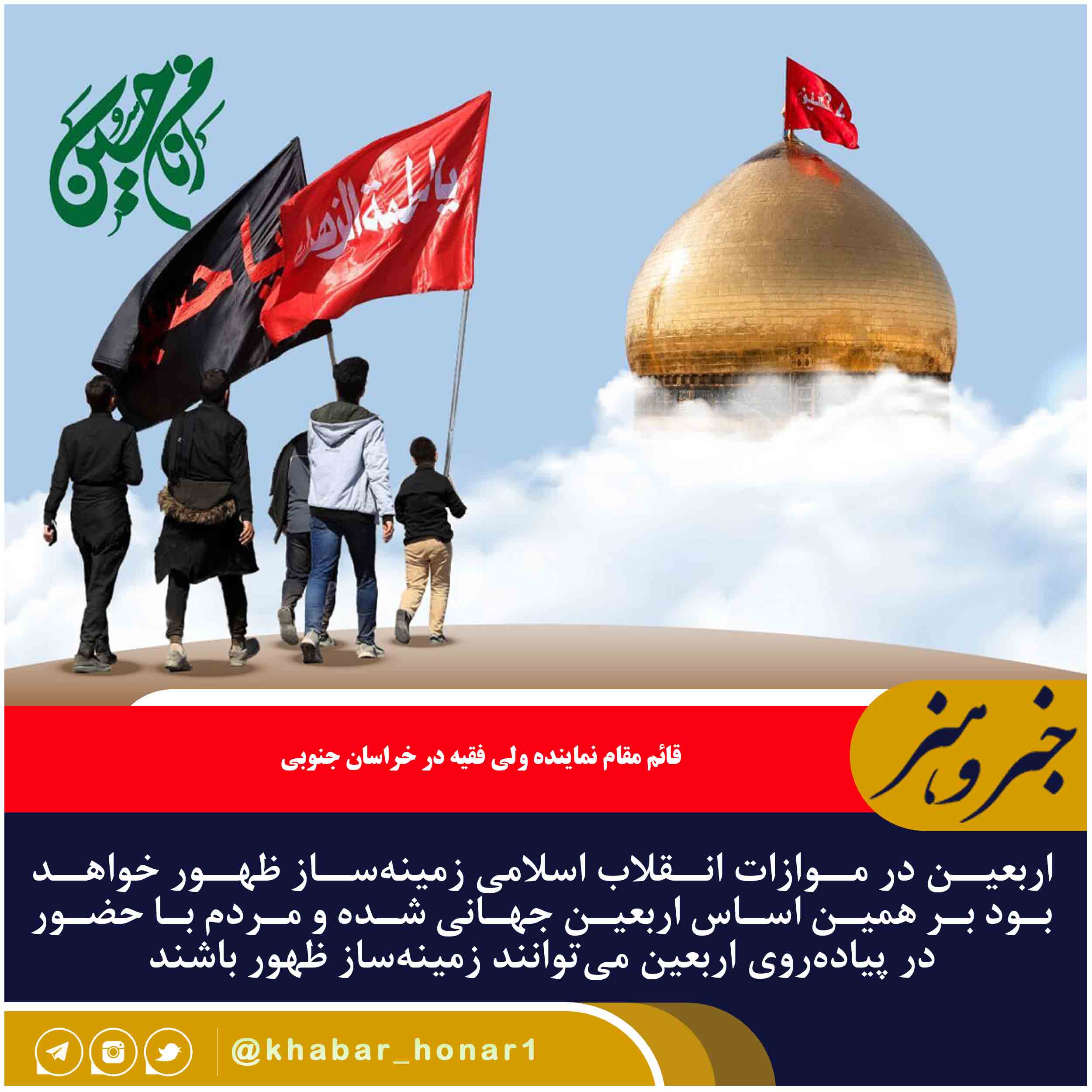 قائم مقام نماینده ولی فقیه در خراسان جنوبی گفت: اربعین در موازات انقلاب اسلامی زمینهساز ظهور خواهد بود بر همین اساس اربعین جهانی شده و مردم با حضور در پیادهروی اربعین میتوانند زمینهساز ظهور باشند.