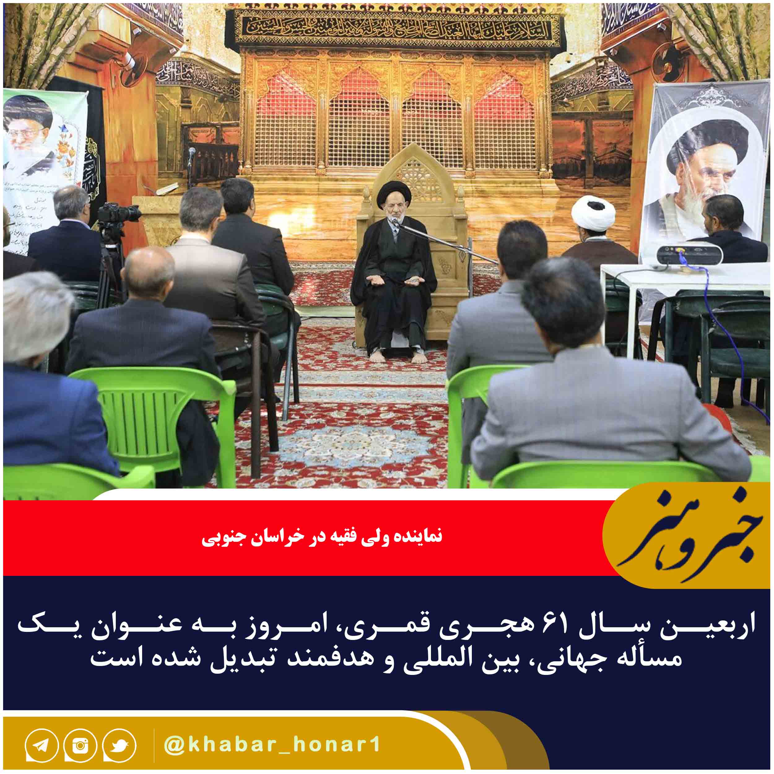 نماینده ولی فقیه در خراسان جنوبی و امام جمعه گفت: اربعین سال ۶۱ هجری قمری، امروز به عنوان یک مسأله جهانی، بین المللی و هدفمند تبدیل شده و مظلومان عالم که از ظلم ستمگران به ستوه آمدهاند به اربعین حسینی پناهنده میشوند.
