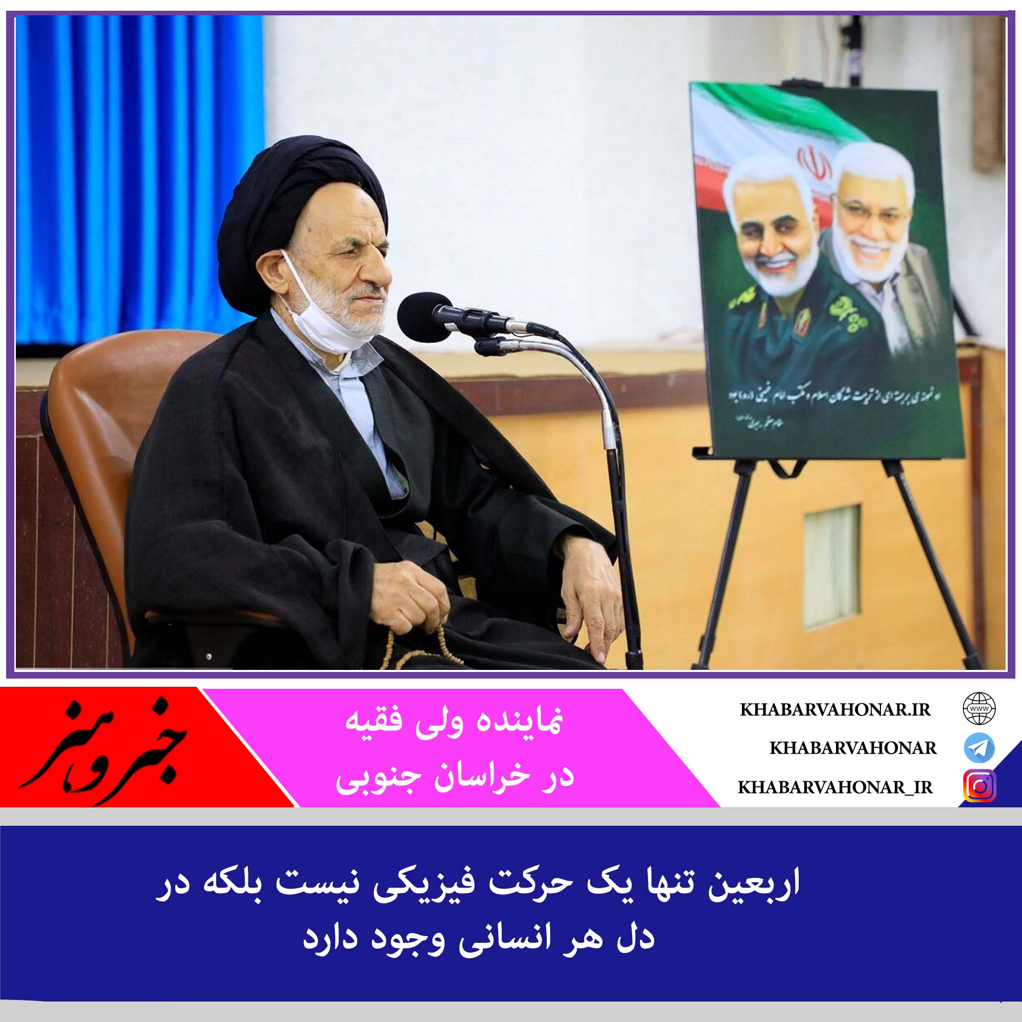 نماینده ولی فقیه در خراسان جنوبی و امام جمعه بیرجند گفت: اربعین تنها یک حرکت فیزیکی نیست بلکه در دل هر انسانی وجود دارد.