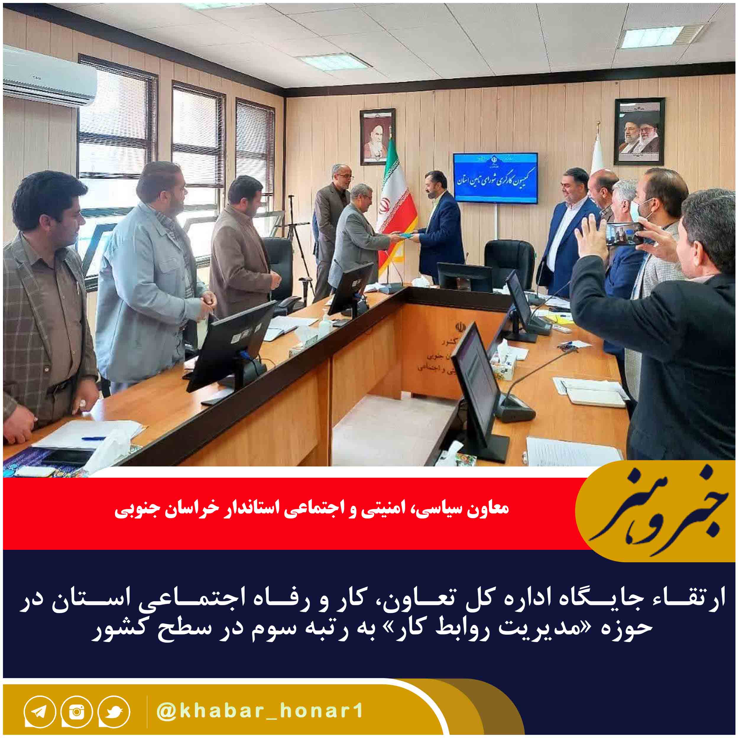 ?معاون سیاسی، امنیتی و اجتماعی استاندار خراسان جنوبی از ارتقاء جایگاه اداره کل تعاون، کار و رفاه اجتماعی استان در حوزه «مدیریت روابط کار» به رتبه سوم در سطح کشور خبر داد.