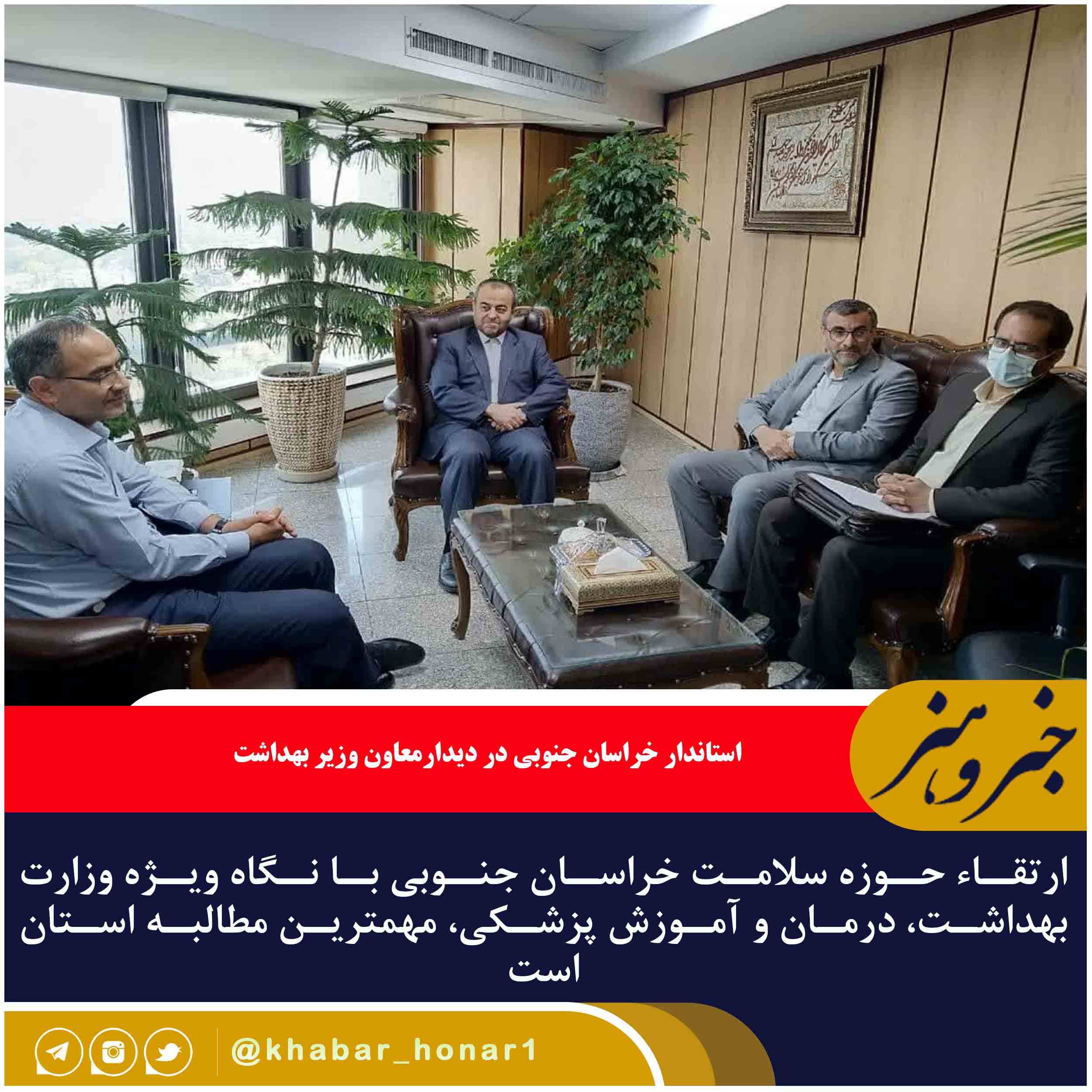 ?وی تصریح کرد: در این دیدار با اشاره به وضعیت موجود استان، بر ضرورت توجه ویژه وزارت بهداشت، درمان و آموزش پزشکی به حوزه بهداشت و درمان خراسان جنوبی تأکید شد .