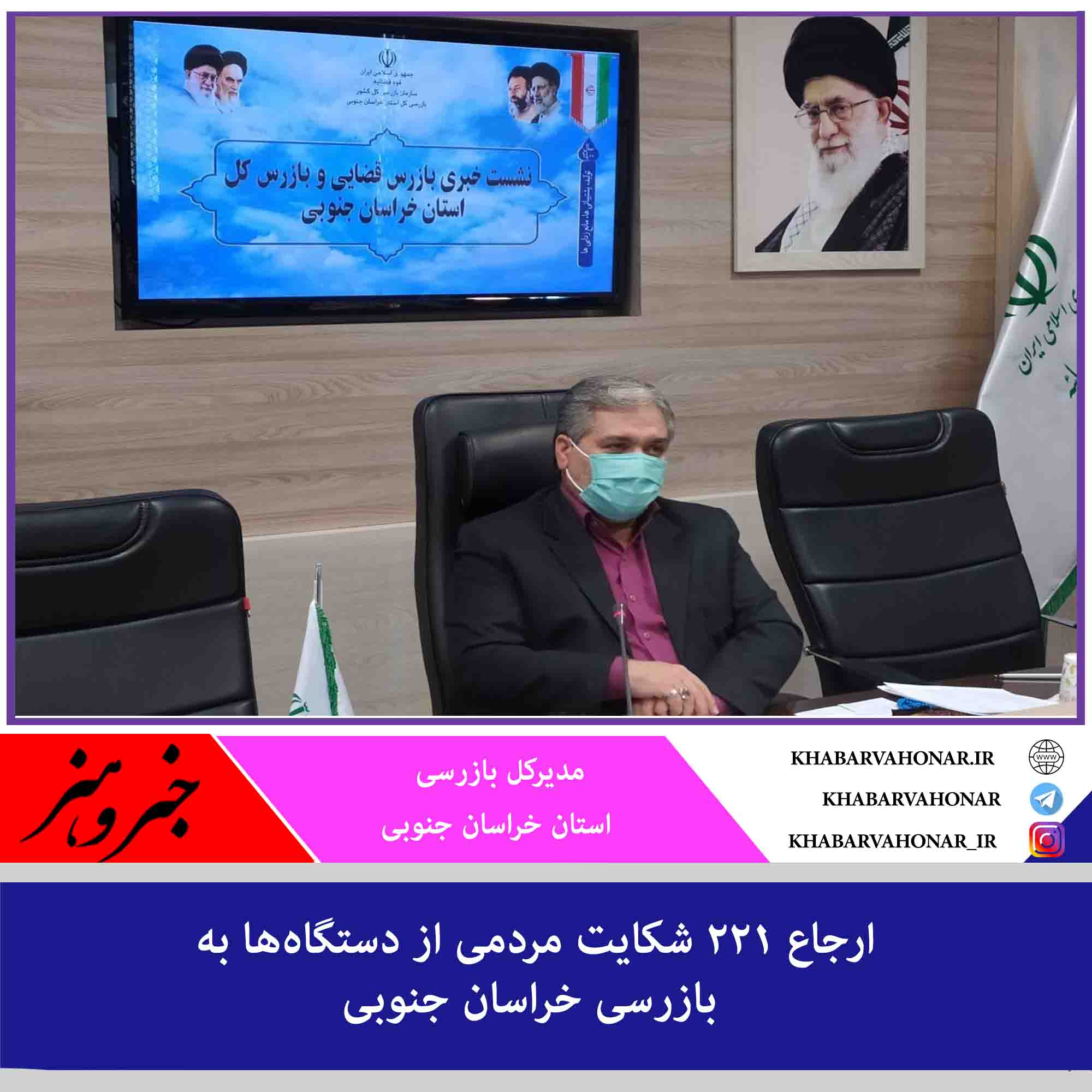 مدیرکل بازرسی خراسان جنوبی گفت: از ابتدای سال تاکنون ۲۲۱ شکایت مردمی از دستگاههای مختلف به این اداره کل ابلاغ شده است.