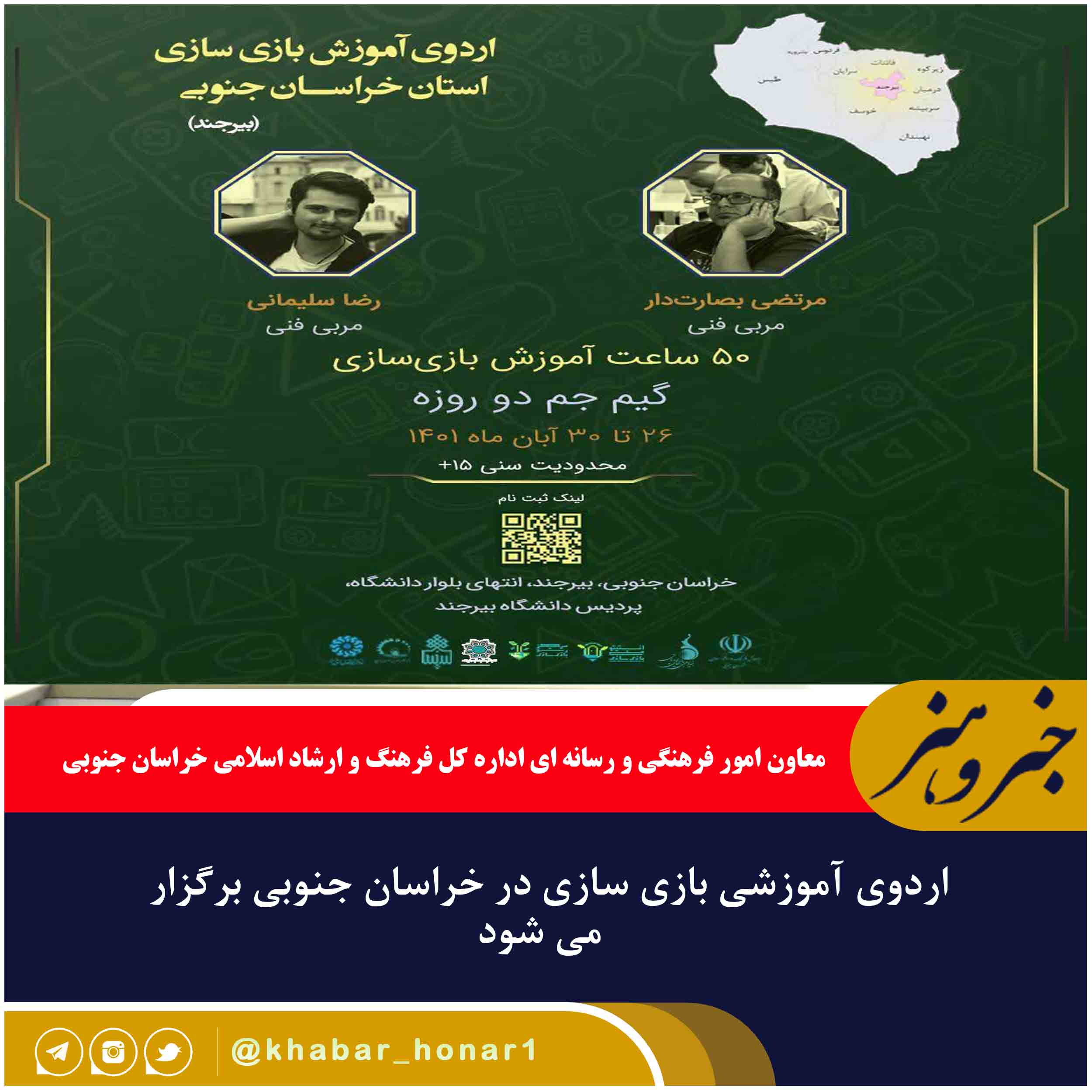 گفتنی است؛ این رویداد به همت اداره کل فرهنگ و ارشاد اسلامی خراسان جنوبی و با همکاری بنیاد ملی بازیهای رایانهای، دانشگاه بیرجند، سازمان رفاهی و ورزشی شهرداری بیرجند و پارک علم و فناوری بیرجند برگزار و شرکتکنندگان گواهینامه بازیسازی انستیتو ملی بازیسازی را دریافت خواهند کرد.