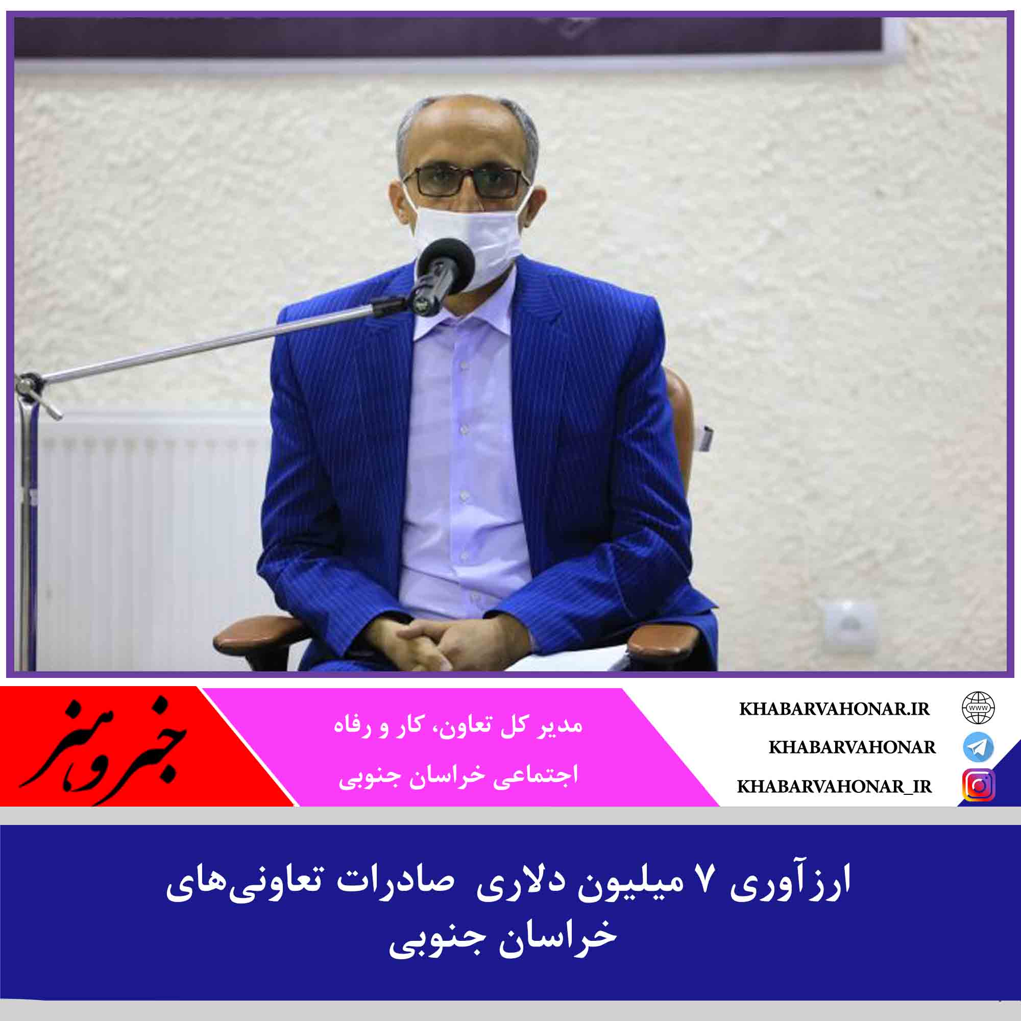 صادرات تعاونی های خراسان جنوبی در ۹ ماه گذشته ۷ میلیون و ۶۶۶ هزار دلار برای استان ارزآوری داشت.