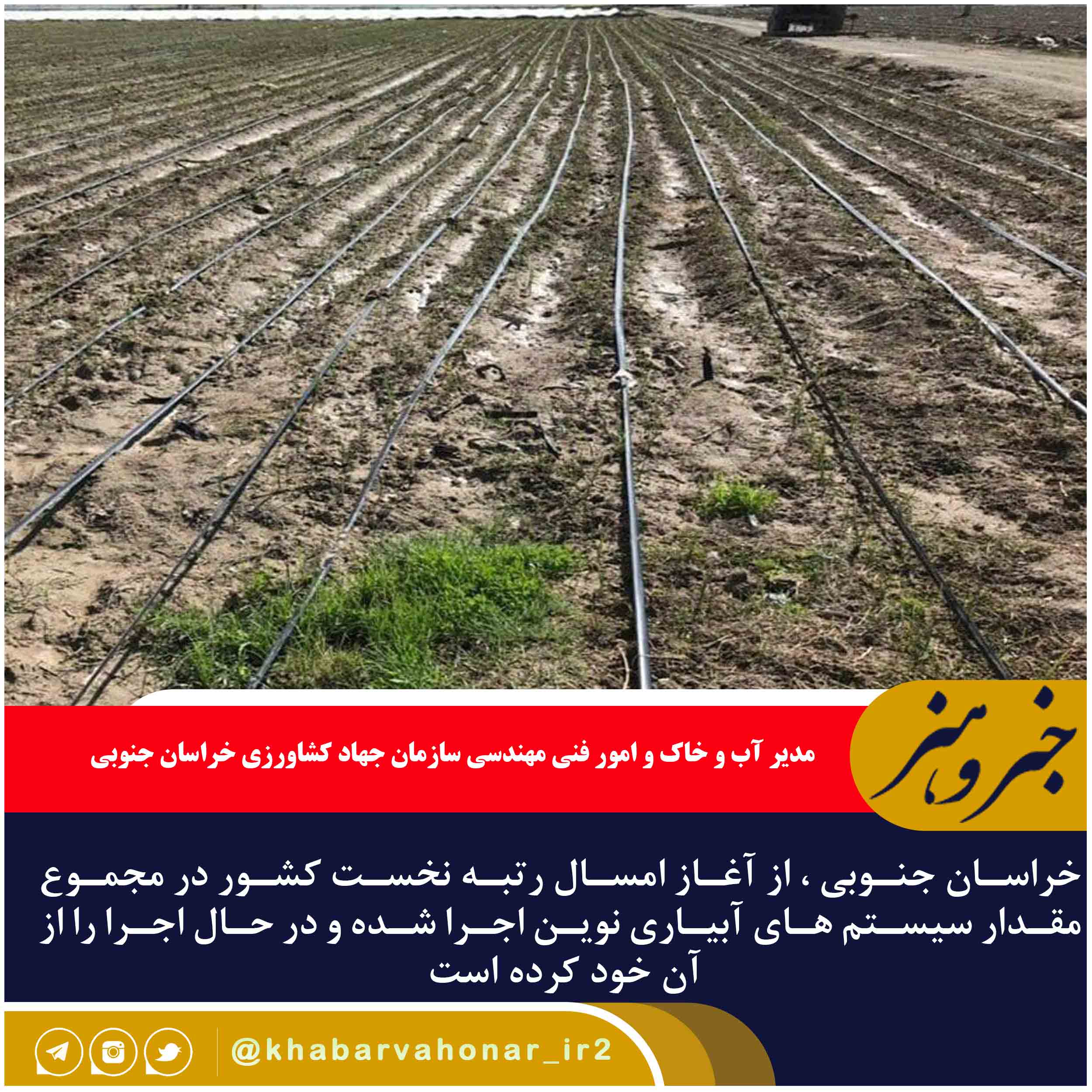 خراسان جنوبی ، از آغاز امسال رتبه نخست کشور در مجموع مقدار سیستم های آبیاری نوین اجرا شده و در حال اجرا را از آن خود کرده است .