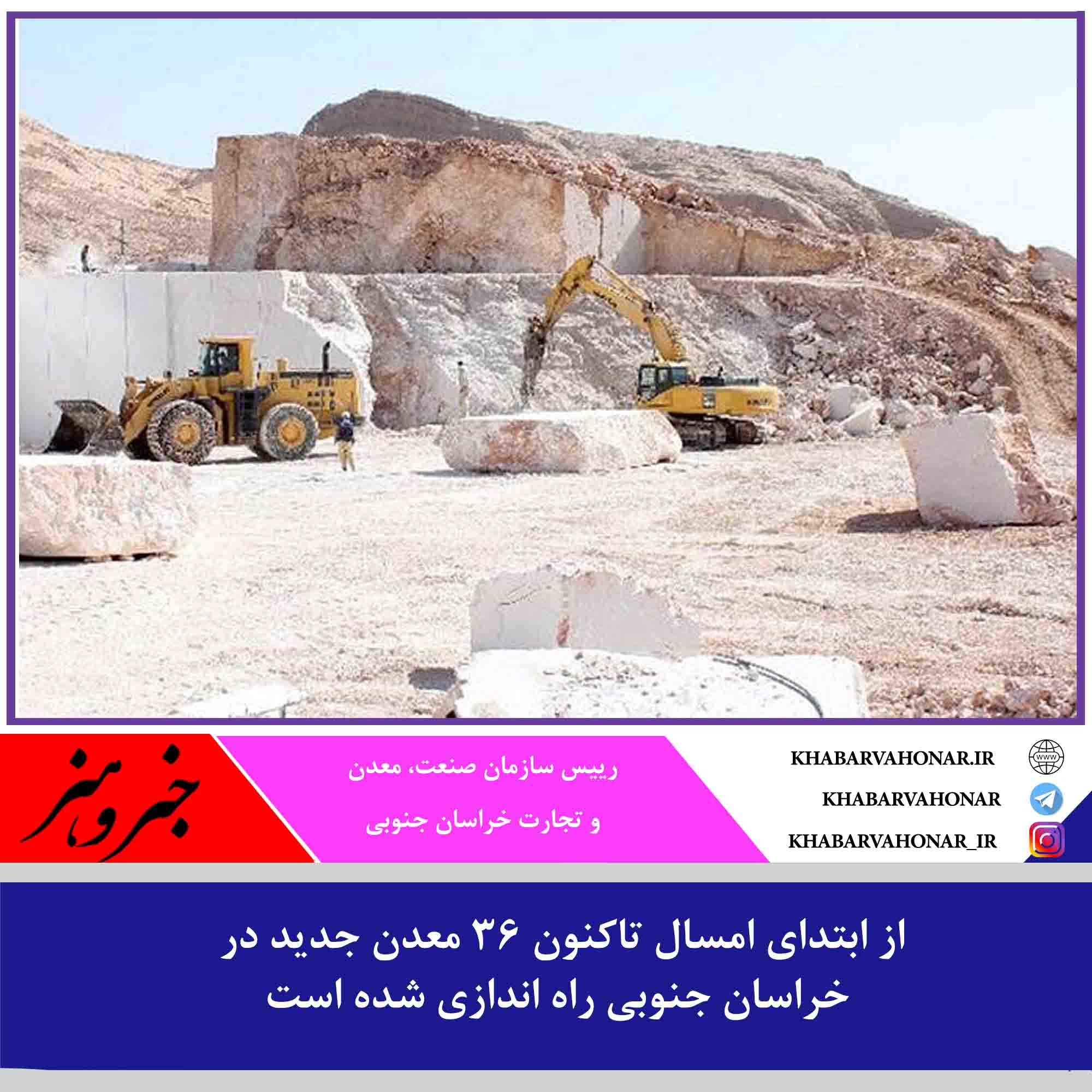 رییس سازمان صنعت، معدن و تجارت خراسان جنوبی گفت: ۳۶ معدن جدید سال ۱۴۰۰ در این استان راهاندازی شد که از این معادن سالانه ۶۱۷ هزار تن ماده معدنی استخراج میشود.