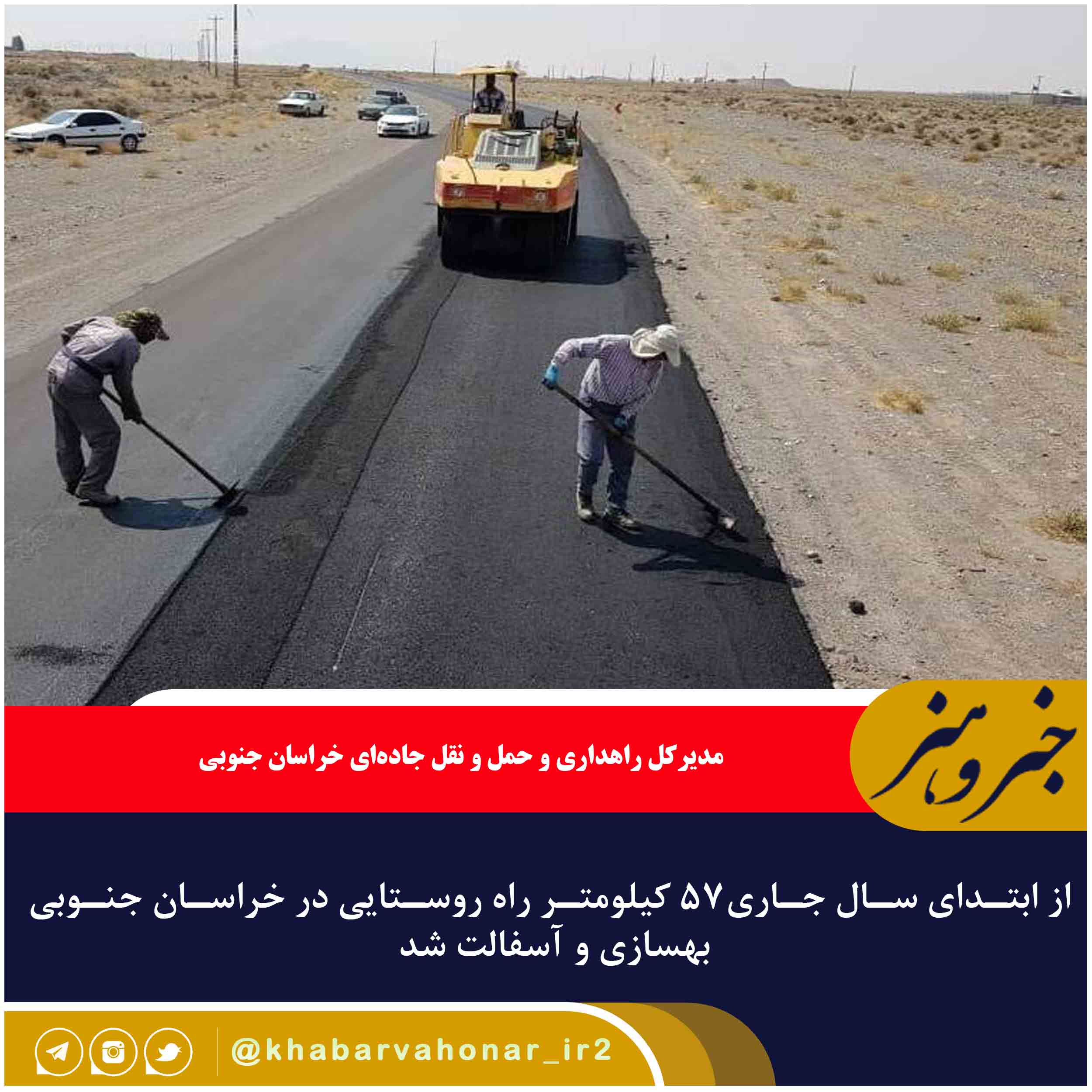 مدیرکل راهداری و حمل و نقل جادهای خراسان جنوبی گفت: بهسازی و آسفالت ۵۷ کیلومتر راه روستایی استان از ابتدای سال جاری تاکنون با اعتبار ۳۸۲ میلیارد ریال انجام شده است.