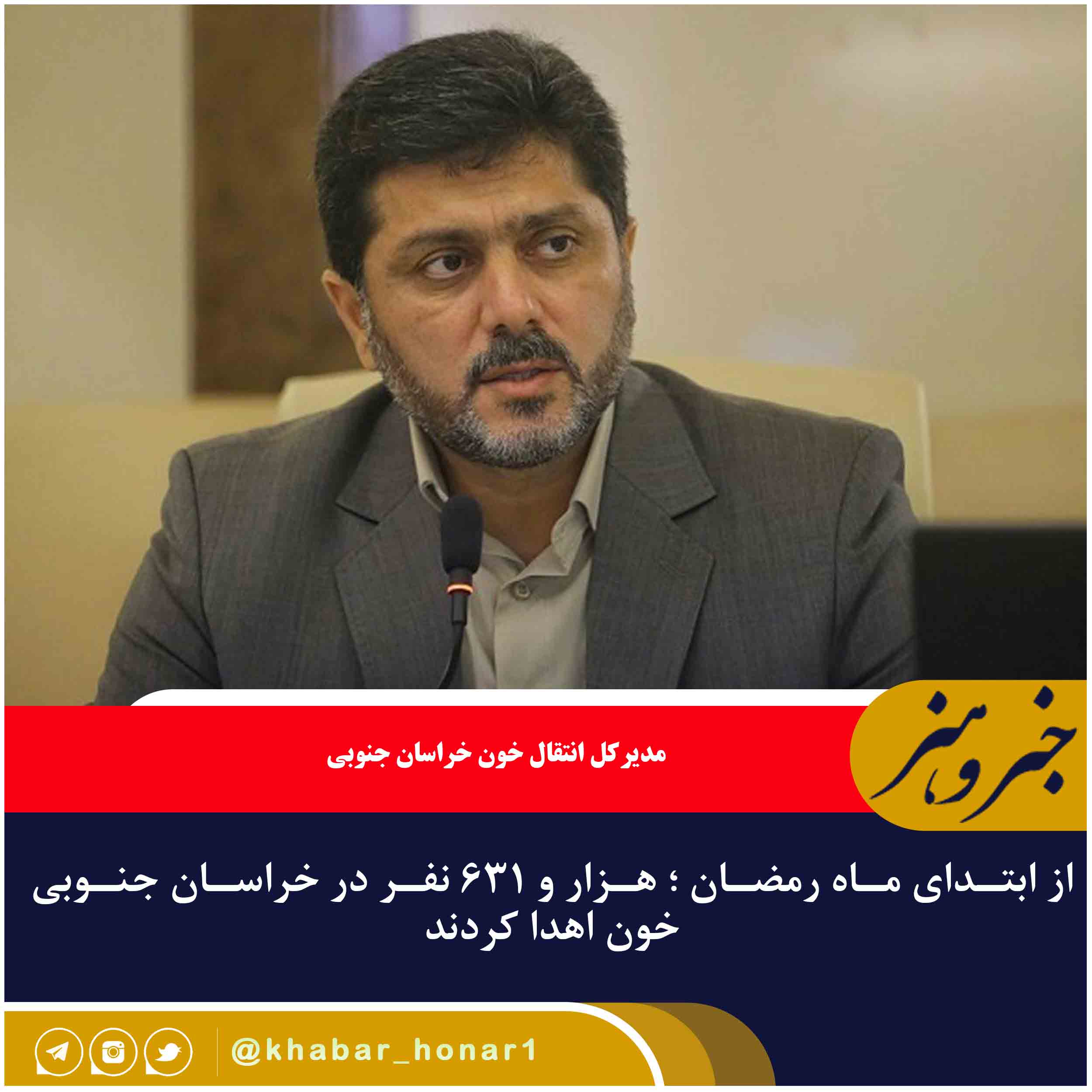مدیرکل انتقال خون خراسان جنوبی گفت: از ابتدای ماه مبارک رمضان تعداد هزار و ۹۱۱ نفر در خراسان جنوبی برای اهدای خون مراجعه کردند که از این تعداد هزار و ۶۳۱ نفر موفق به اهدای خون شدند.