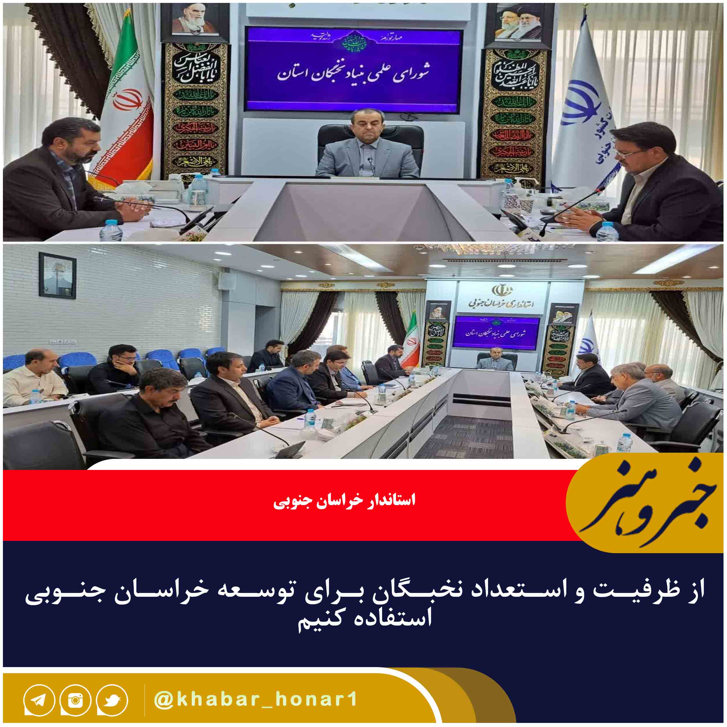 ?استاندار خراسان جنوبی تأکید کرد: از ظرفیت و استعداد نخبگان برای توسعه استان استفاده کنیم.