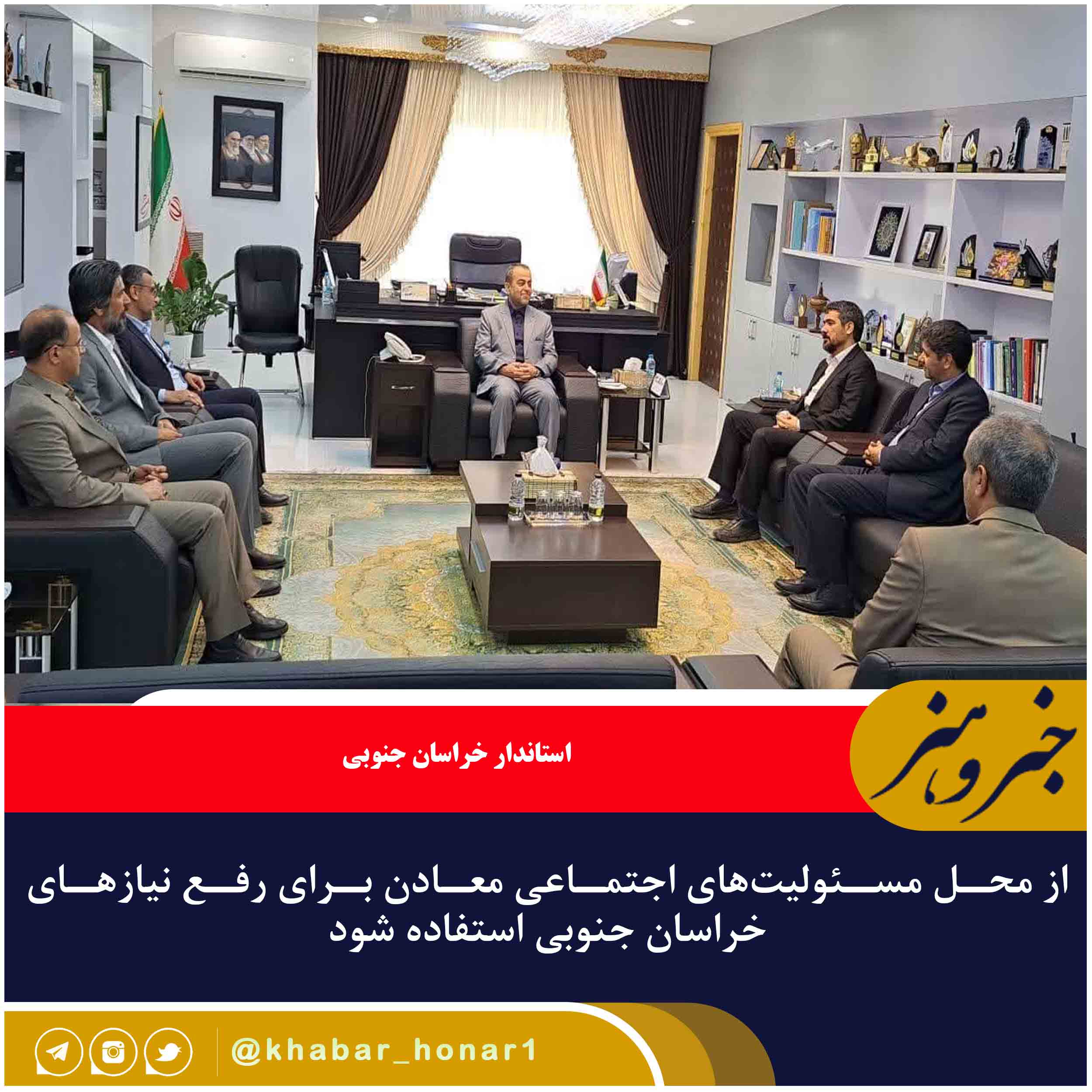 ?استاندار خراسان جنوبی گفت: از محل مسئولیتهای اجتماعی معادن برای رفع نیازها و زیرساخت های استان استفاده شود.
