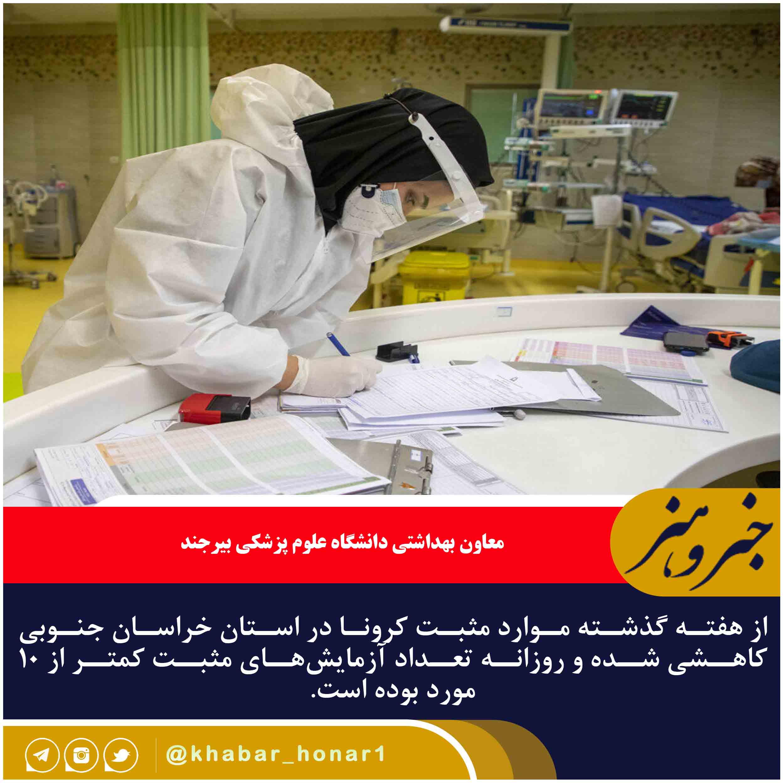 معاون بهداشتی دانشگاه علوم پزشکی بیرجند گفت: از هفته گذشته موارد مثبت کرونا در استان خراسان جنوبی کاهشی شده و روزانه تعداد آزمایشهای مثبت کمتر از ۱۰ مورد بوده است.