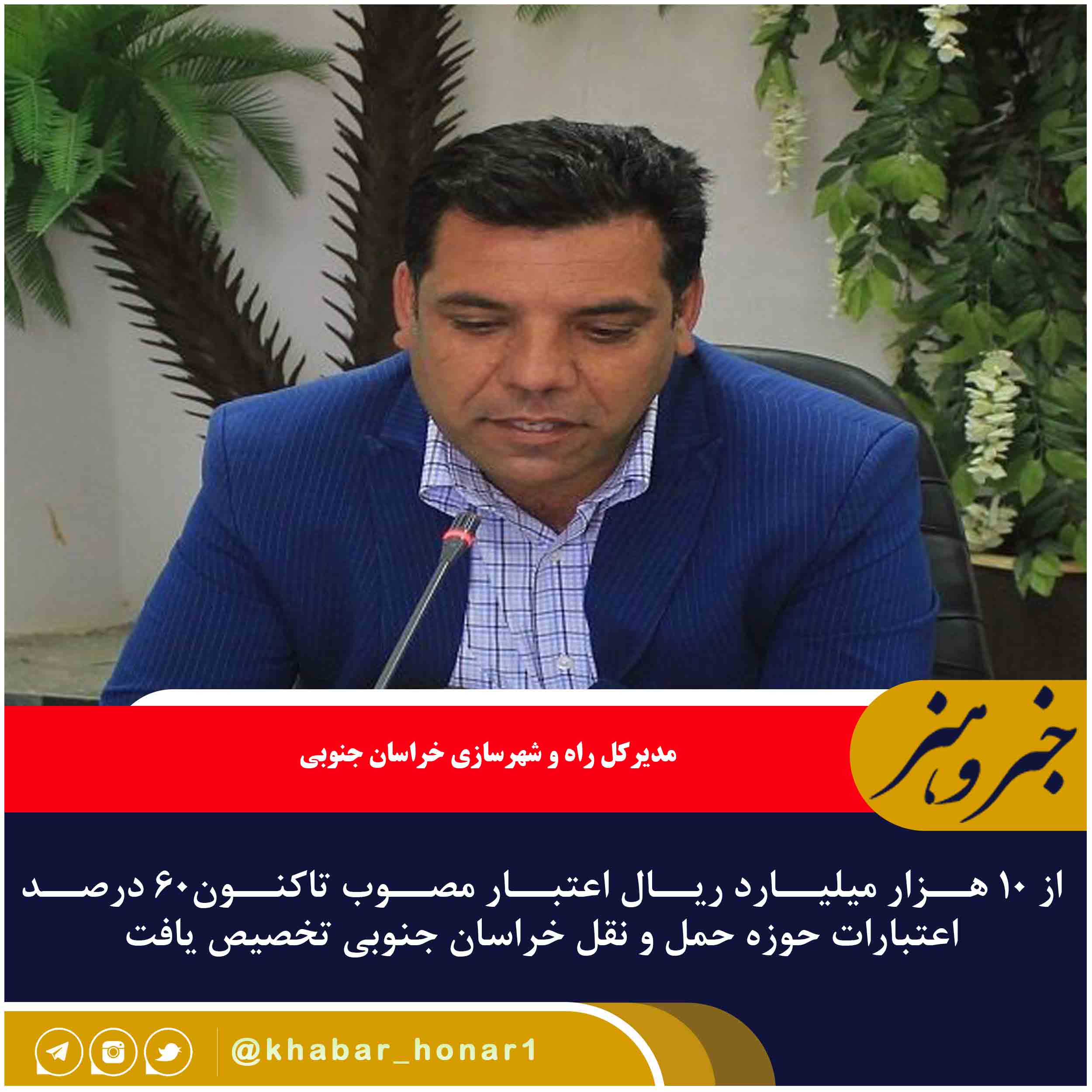 مدیرکل راه و شهرسازی خراسان جنوبی گفت: امسال ۱۰ هزار میلیارد ریال اعتبار برای بخش حمل و نقل استان مصوب شده که تاکنون ۶۰ درصد این اعتبار تخصیص یافته است.