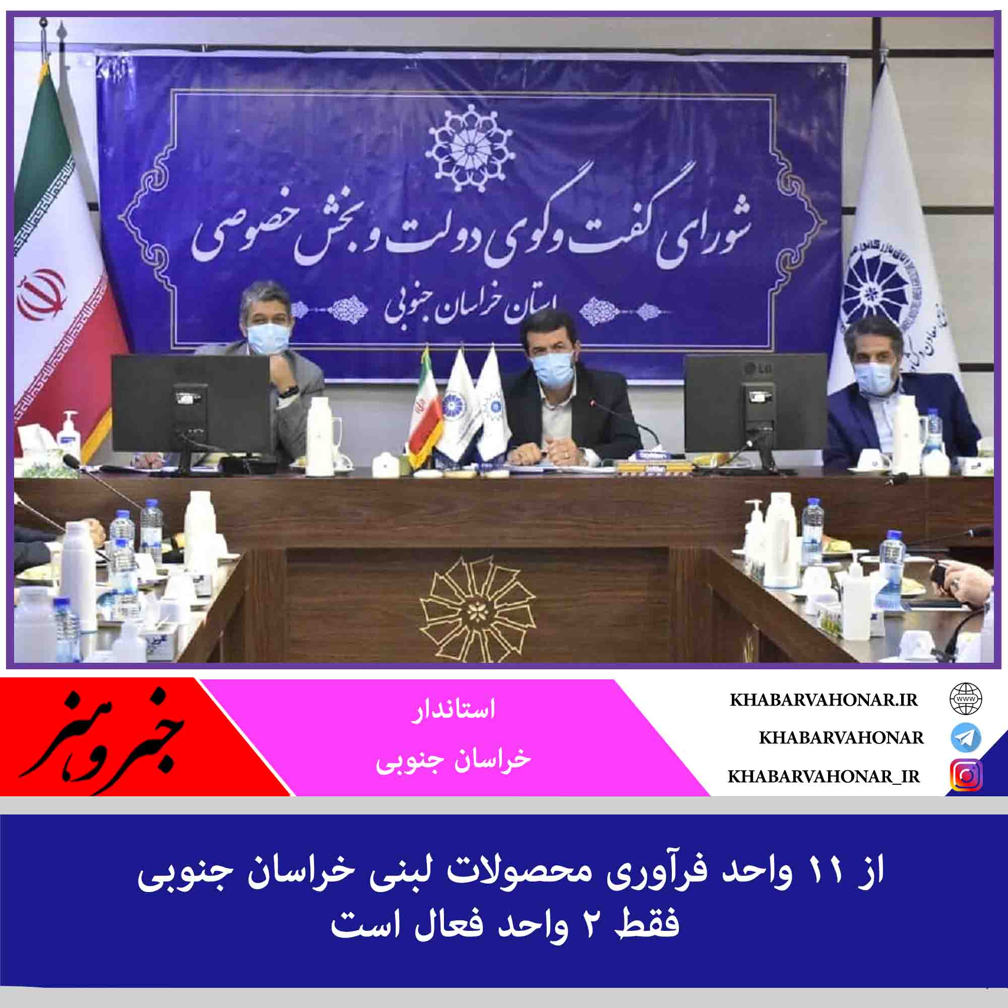 استاندار خراسان جنوبی گفت: در حال حاضر از ۱۱ واحد فرآوری محصولات لبنی استان فقط ۲ واحد فعال است و باید راهاندازی این واحدها در دستور کار جدی قرار گیرد.