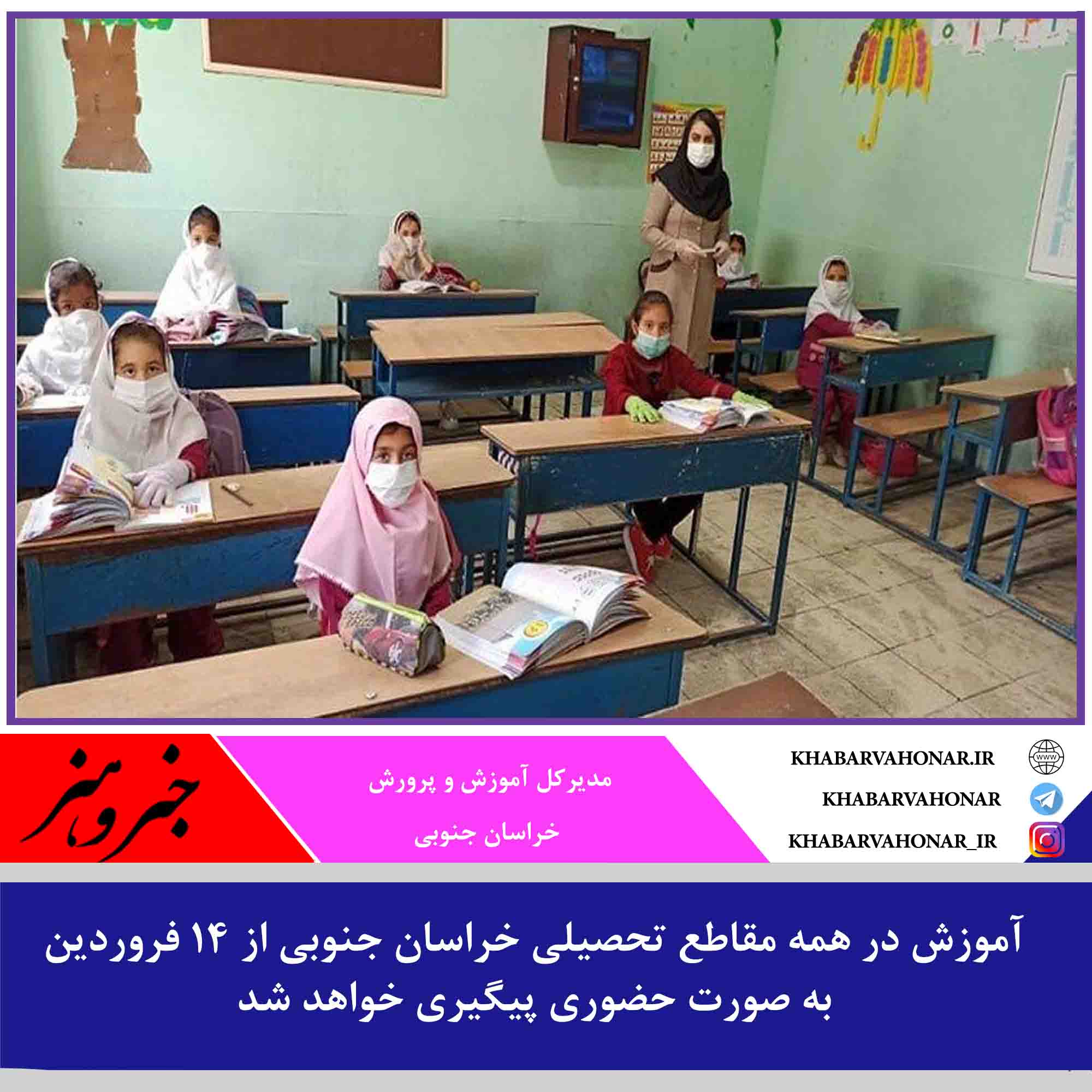 آموزش در همه مقاطع تحصیلی خراسان جنوبی از ۱۴ فروردین به صورت حضوری پیگیری خواهد شد.