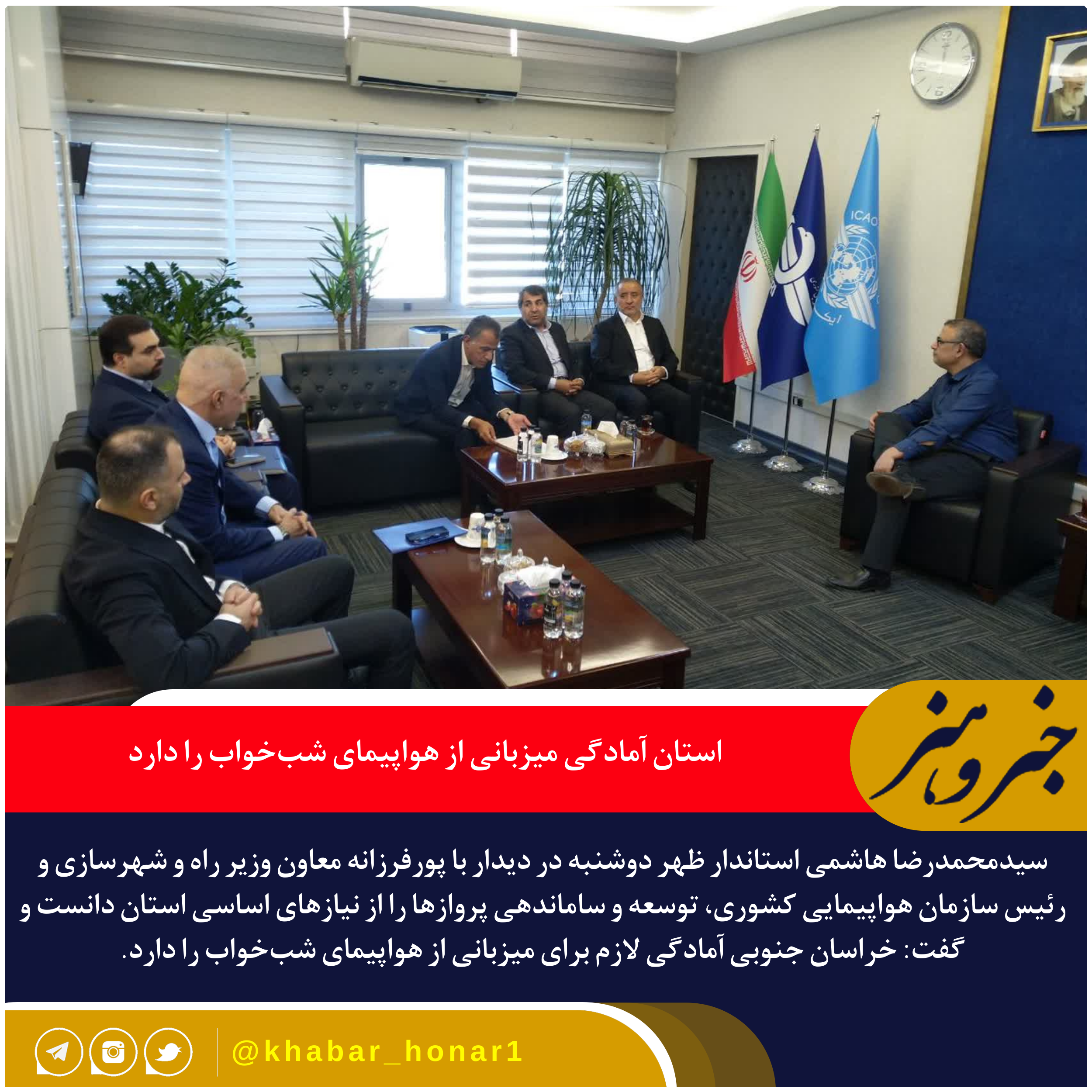 به گزارش خبر و هنر، سیدمحمدرضا هاشمی استاندار ظهر دوشنبه در دیدار با پورفرزانه معاون وزیر راه و شهرسازی و رئیس سازمان هواپیمایی کشوری، توسعه و ساماندهی پروازها را از نیازهای اساسی استان دانست و گفت: خراسان جنوبی آمادگی لازم برای میزبانی از هواپیمای شبخواب را دارد.