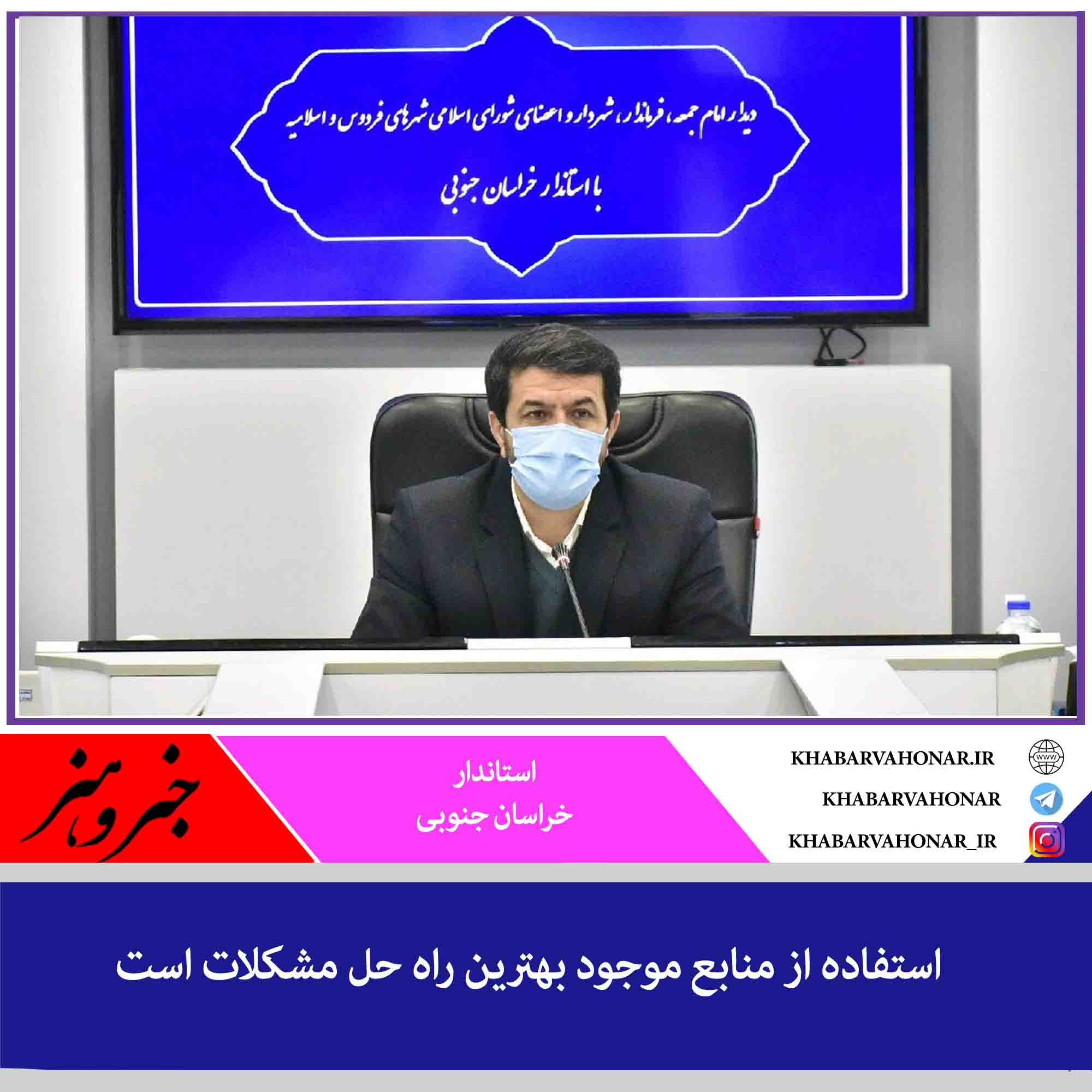 استاندار خراسان جنوبی گفت: بهترین راه حل برای رفع مشکلات موجود این است که زمینههای بهرهبرداری از منابع در اختیار را فراهم کنیم.
