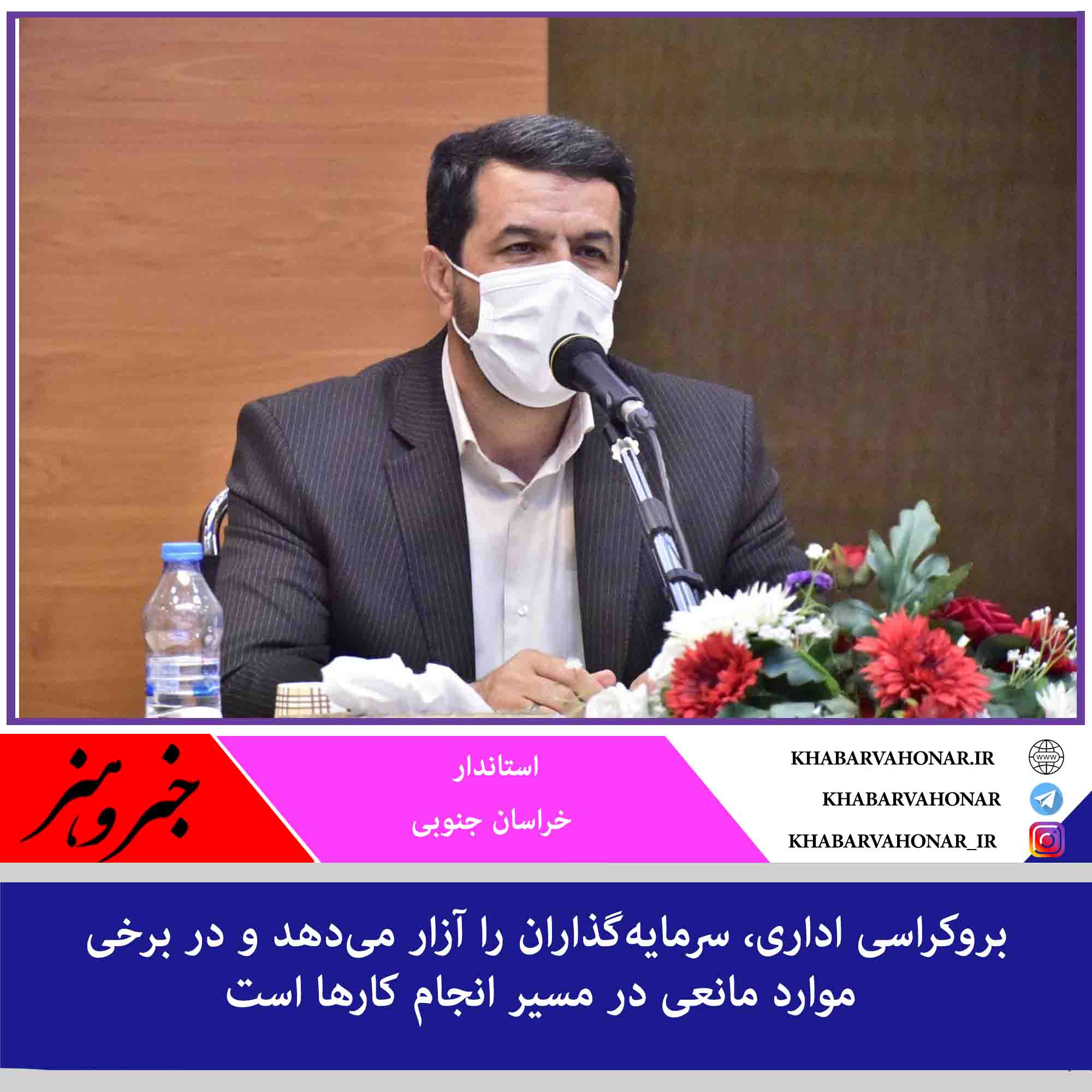 – استاندار خراسان جنوبی گفت: بروکراسی اداری، سرمایهگذاران را آزار میدهد و در برخی موارد مانعی در مسیر انجام کارها است.