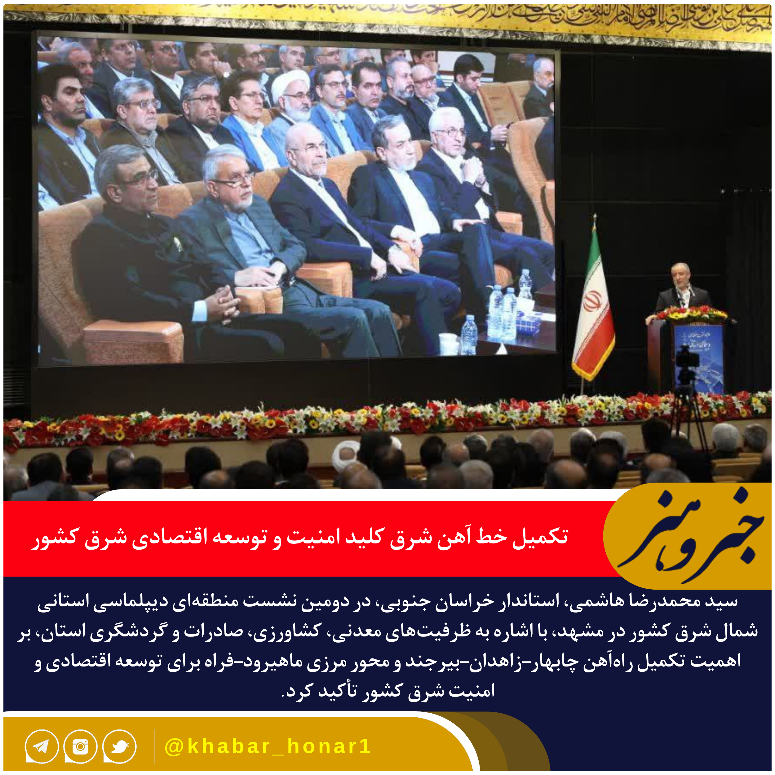 به گزارش خبر و هنر، عصر چهارشنبه، سید محمدرضا هاشمی، استاندار خراسان جنوبی در دومین نشست منطقهای دیپلماسی استانی حوزه شمال شرق کشور که با حضور رئیس مجلس، وزرای امور خارجه و میراث فرهنگی، سفرای ایران و استانداران سه استان خراسان برگزار شد، به معرفی ظرفیتهای توسعهای استان پرداخت.