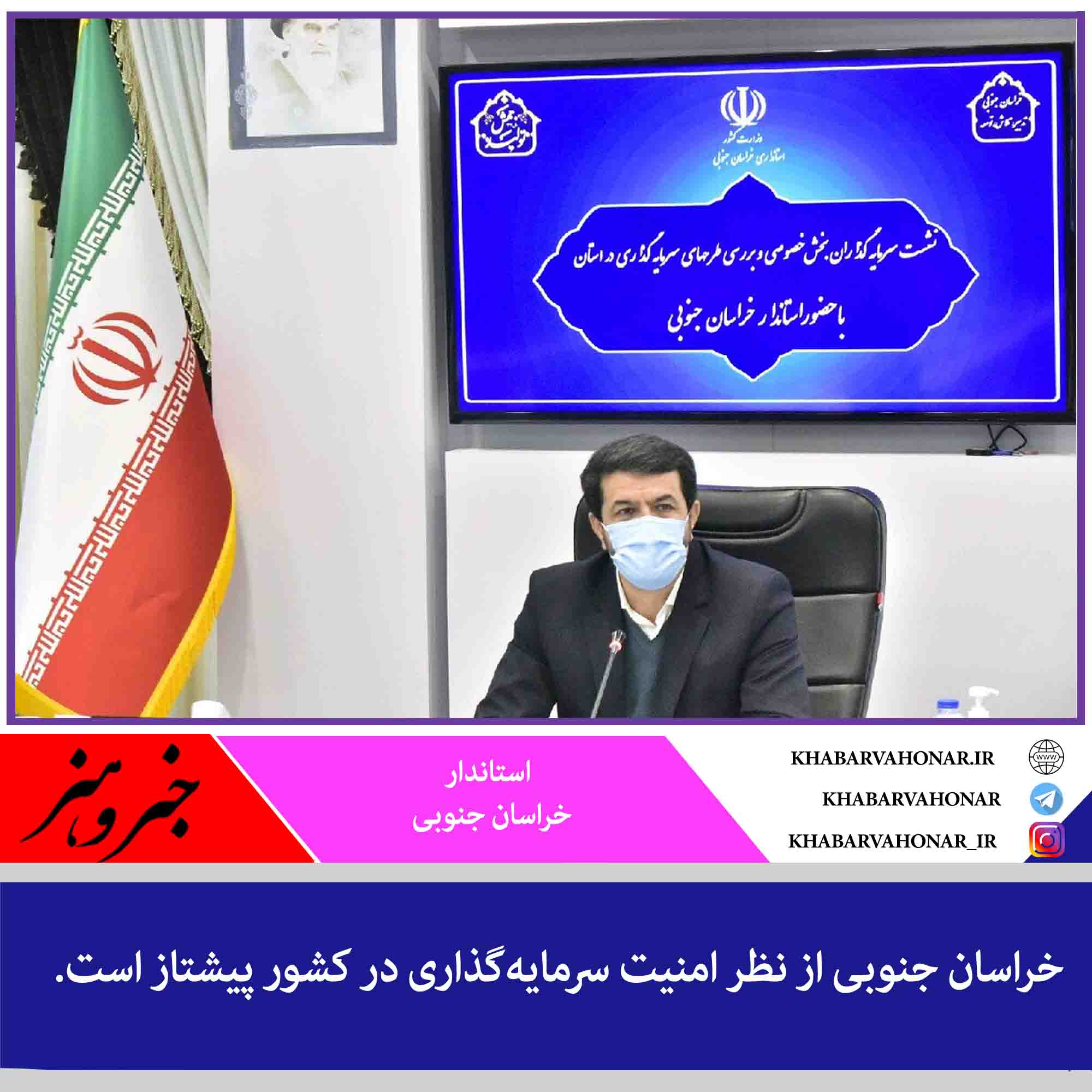 استاندار خراسان جنوبی از رتبه برتر این استان در امنیت سرمایهگذاری خبر داد و گفت: خراسان جنوبی از نظر امنیت سرمایهگذاری در کشور پیشتاز است.