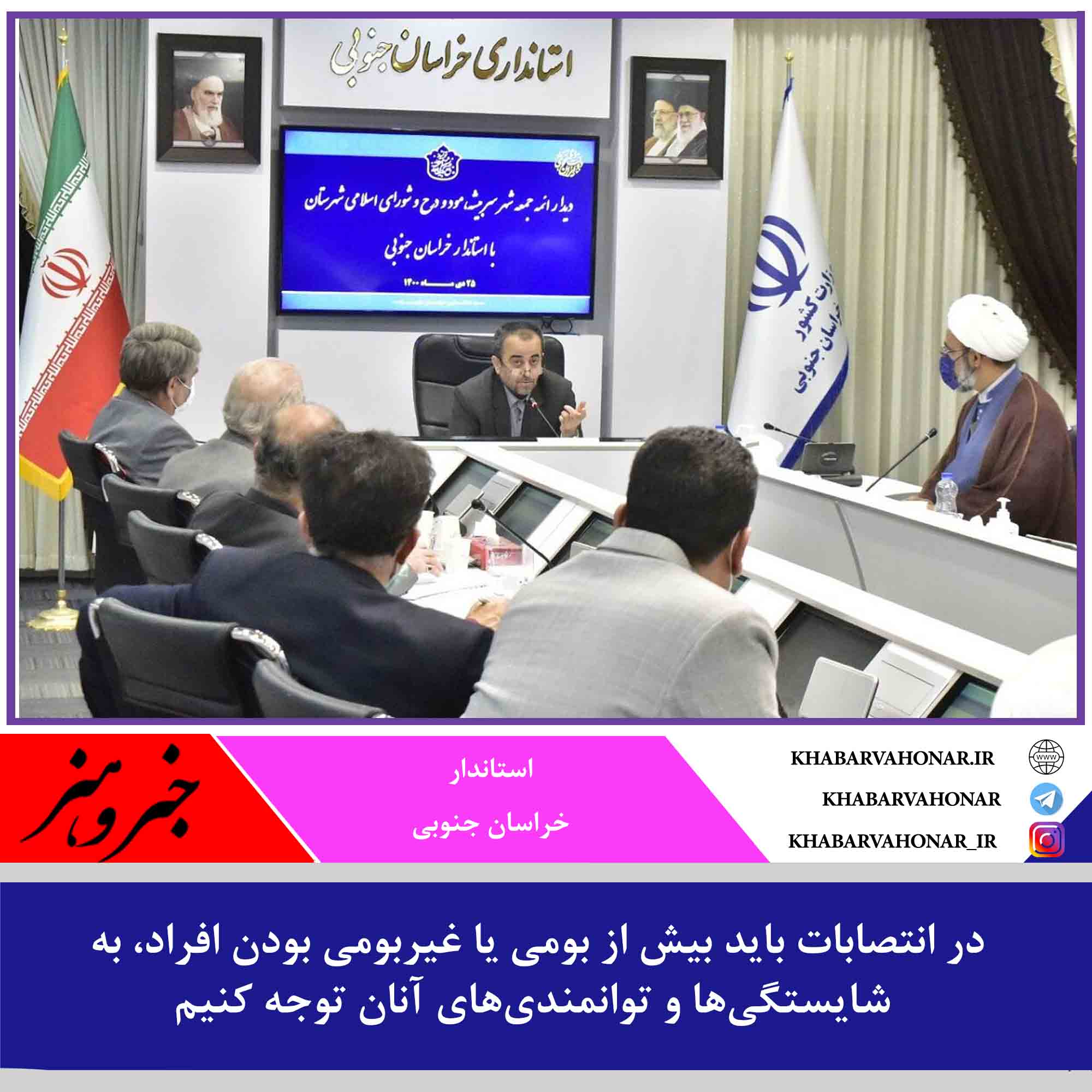 استاندار خراسان جنوبی با اشاره به نقش مدیران در پیشرفت هر منطقه گفت: در انتصابات باید بیش از بومی یا غیربومی بودن افراد، به شایستگیها و توانمندیهای آنان توجه کنیم.