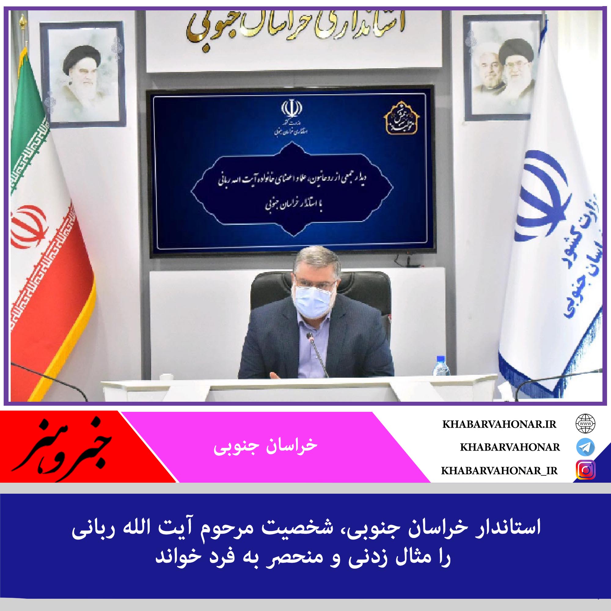 ?استاندار خراسان جنوبی، شخصیت مرحوم آیت الله ربانی را مثال زدنی و منحصر به فرد خواند.