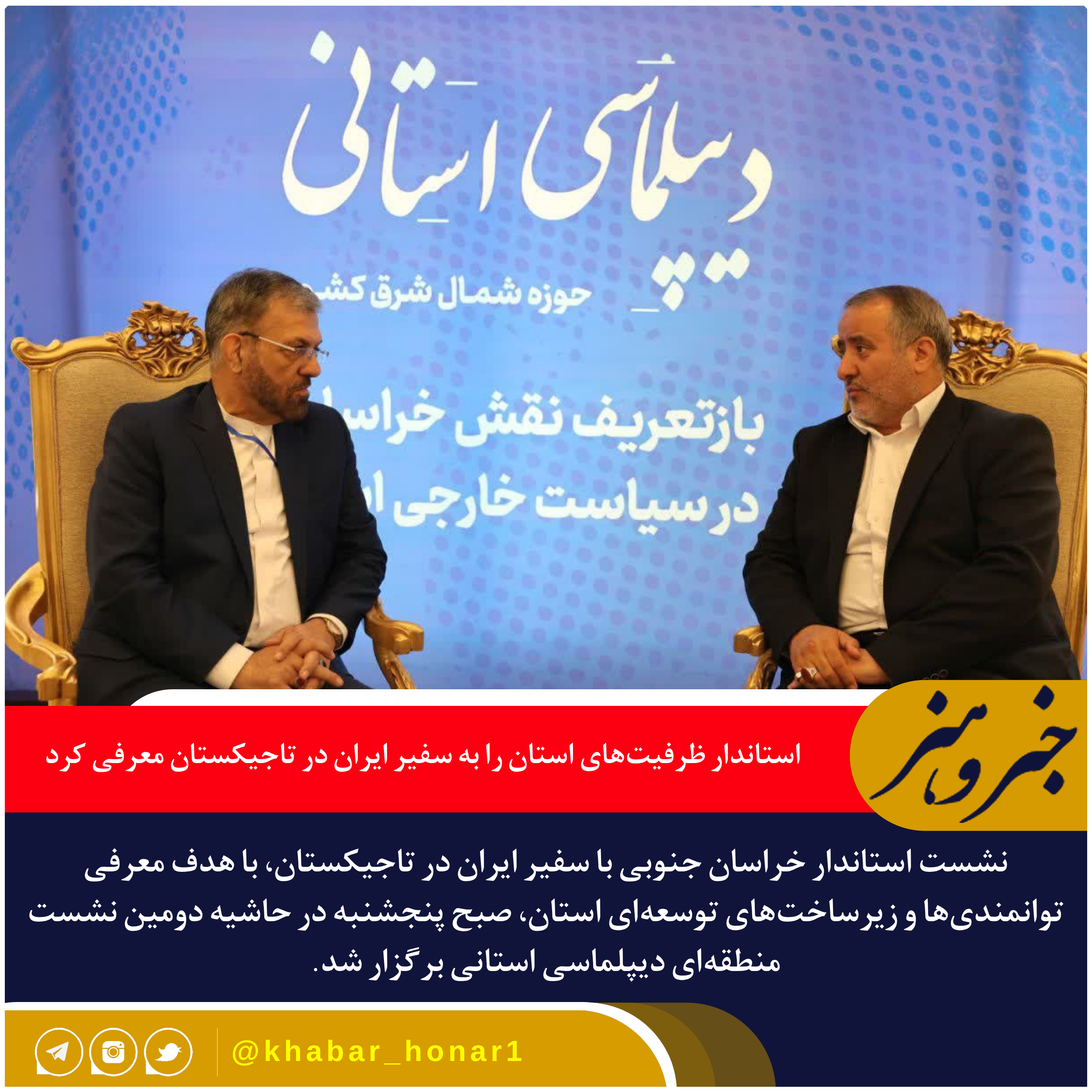 وی همچنین بر آمادگی استان برای گسترش تعاملات اقتصادی و همکاریهای منطقهای با کشورهای همسایه و آسیای میانه تأکید کرد و ابراز امیدواری نمود که این نشست زمینه را برای سرمایهگذاری و همکاریهای مشترک میان ایران و تاجیکستان فراهم کند.