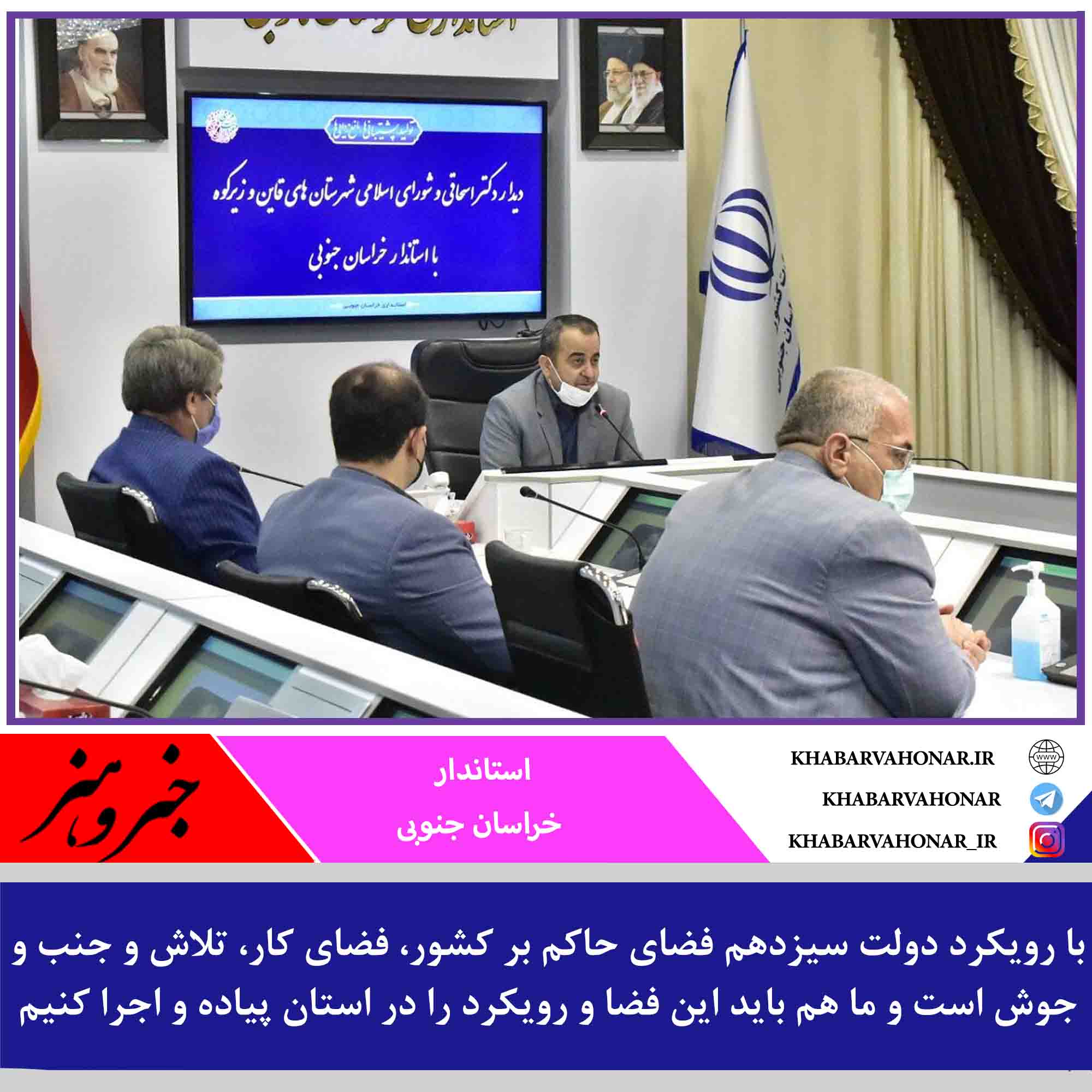 استاندار خراسان جنوبی گفت: با رویکرد دولت سیزدهم فضای حاکم بر کشور، فضای کار، تلاش و جنب و جوش است و ما هم باید این فضا و رویکرد را در استان پیاده و اجرا کنیم.