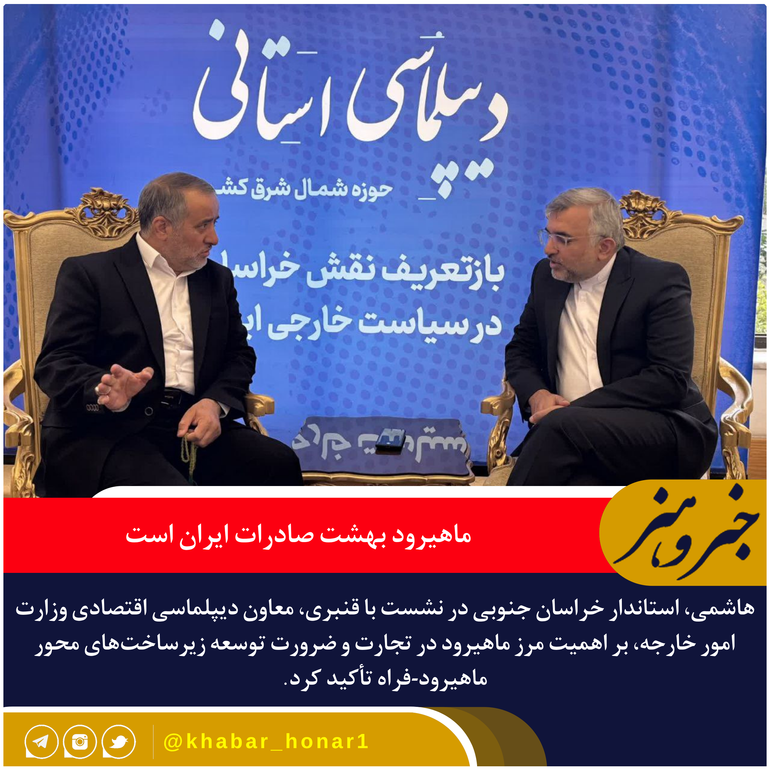 استاندار خراسان جنوبی مرز ماهیرود را «بهشت صادرات ایران» خواند و نقش این مرز در تسهیل مبادلات مرزی و افزایش تجارت با کشورهای همسایه را برجسته کرد. وی بر ضرورت توسعه زیرساختها و تسریع در تکمیل و بهرهبرداری از محور ترانزیتی ماهیرود-فراه تأکید نمود تا ظرفیت صادرات و ترانزیت استان بیش از پیش افزایش یابد.