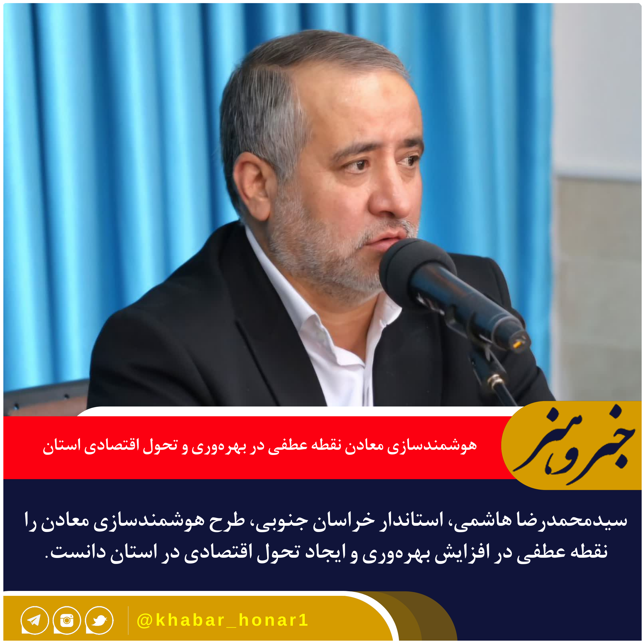 به گزارش خبر و هنر، سیدمحمدرضا هاشمی، استاندار خراسان جنوبی، طرح هوشمندسازی معادن را نقطه عطفی در افزایش بهره‌وری و ایجاد تحول اقتصادی در استان دانست.