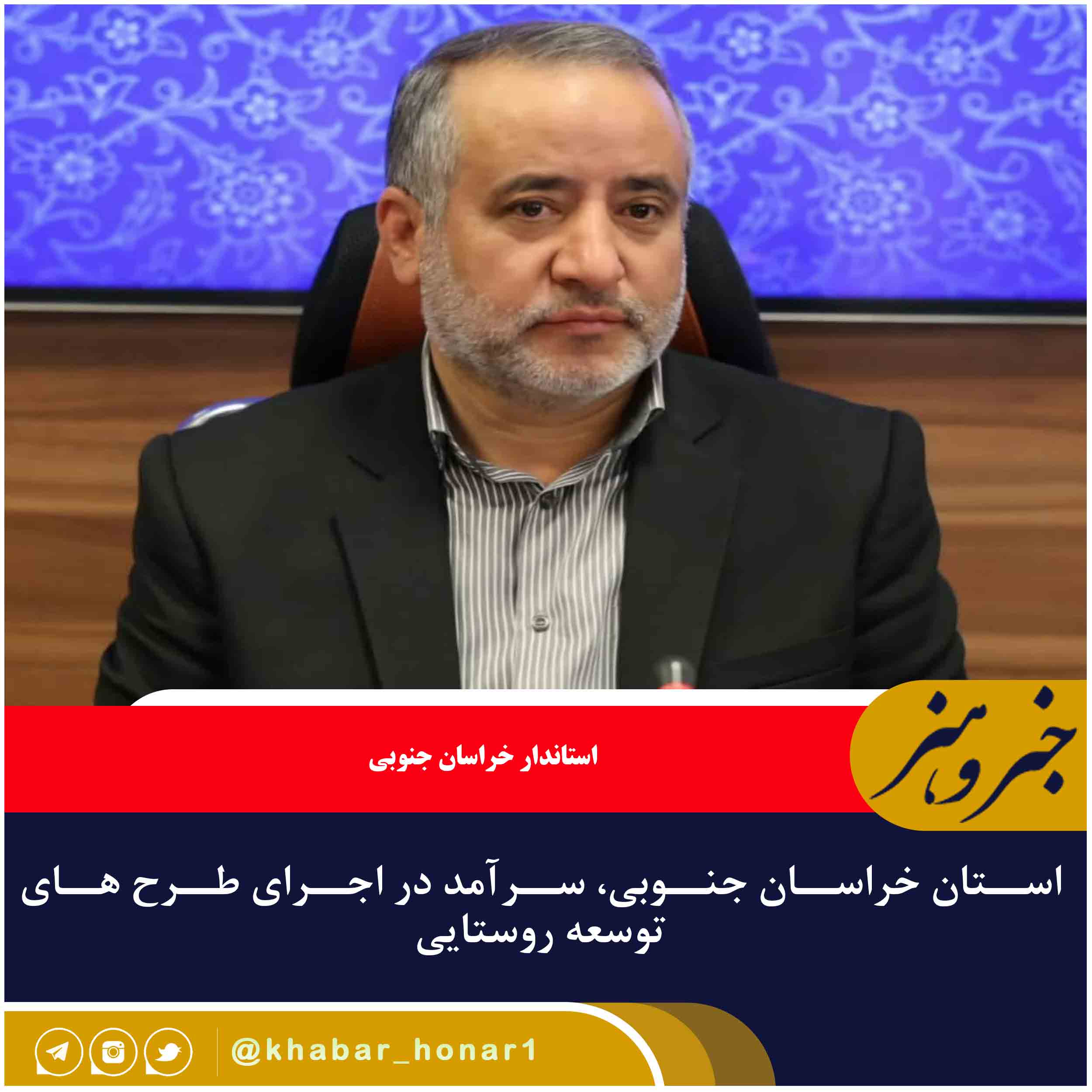 🔹استاندار خراسان جنوبی گفت: استان خراسان جنوبی در اجرای طرح های توسعه روستایی موفق عمل کرده و سرآمد است.