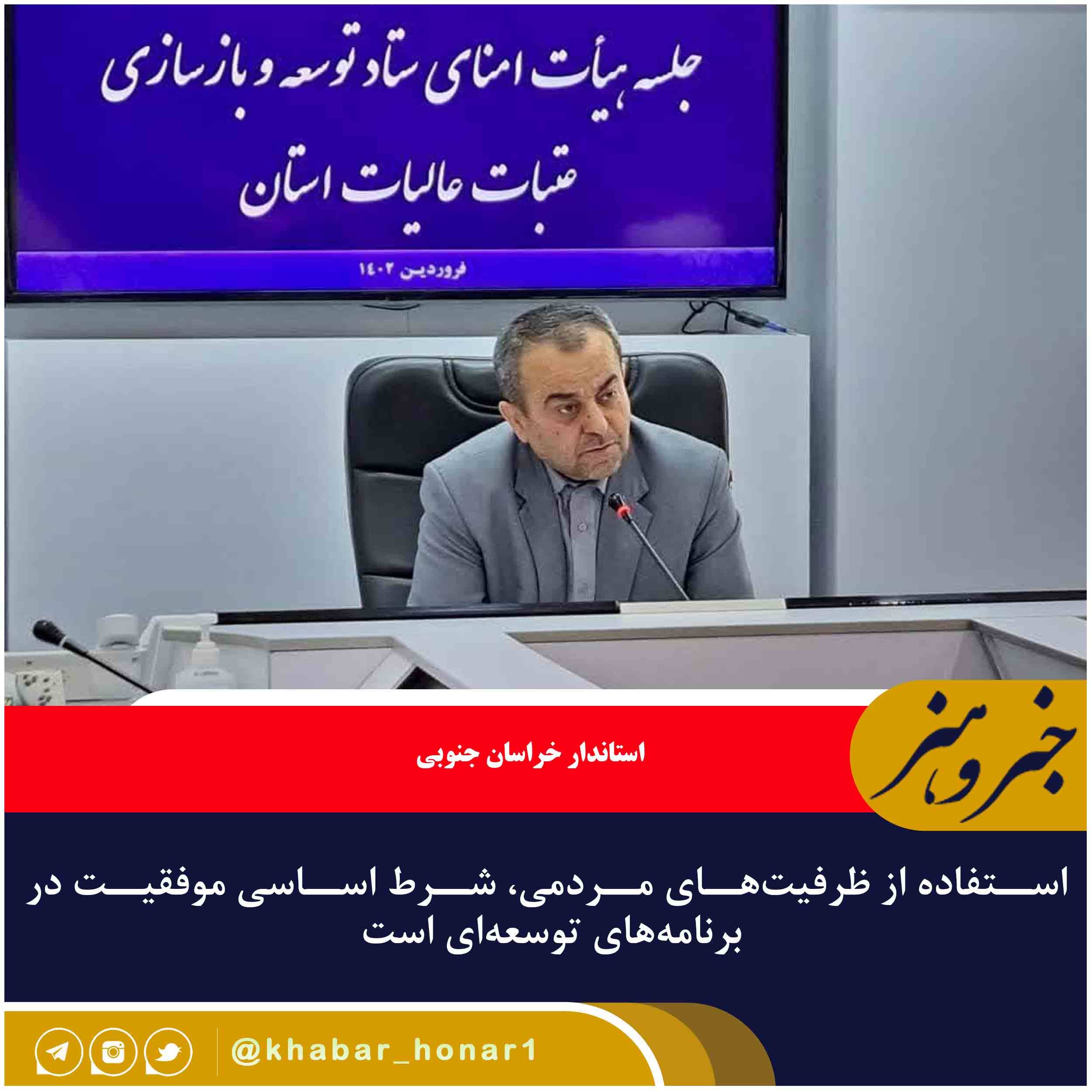 استاندار خراسان جنوبی گفت: تجربه موفق حضور خودجوش مردم در دوران دفاع مقدس و بازسازی عتبات عالیات را دیدهایم لذا استفاده از ظرفیتهای مردمی، شرط اساسی موفقیت در برنامههای توسعهای است.