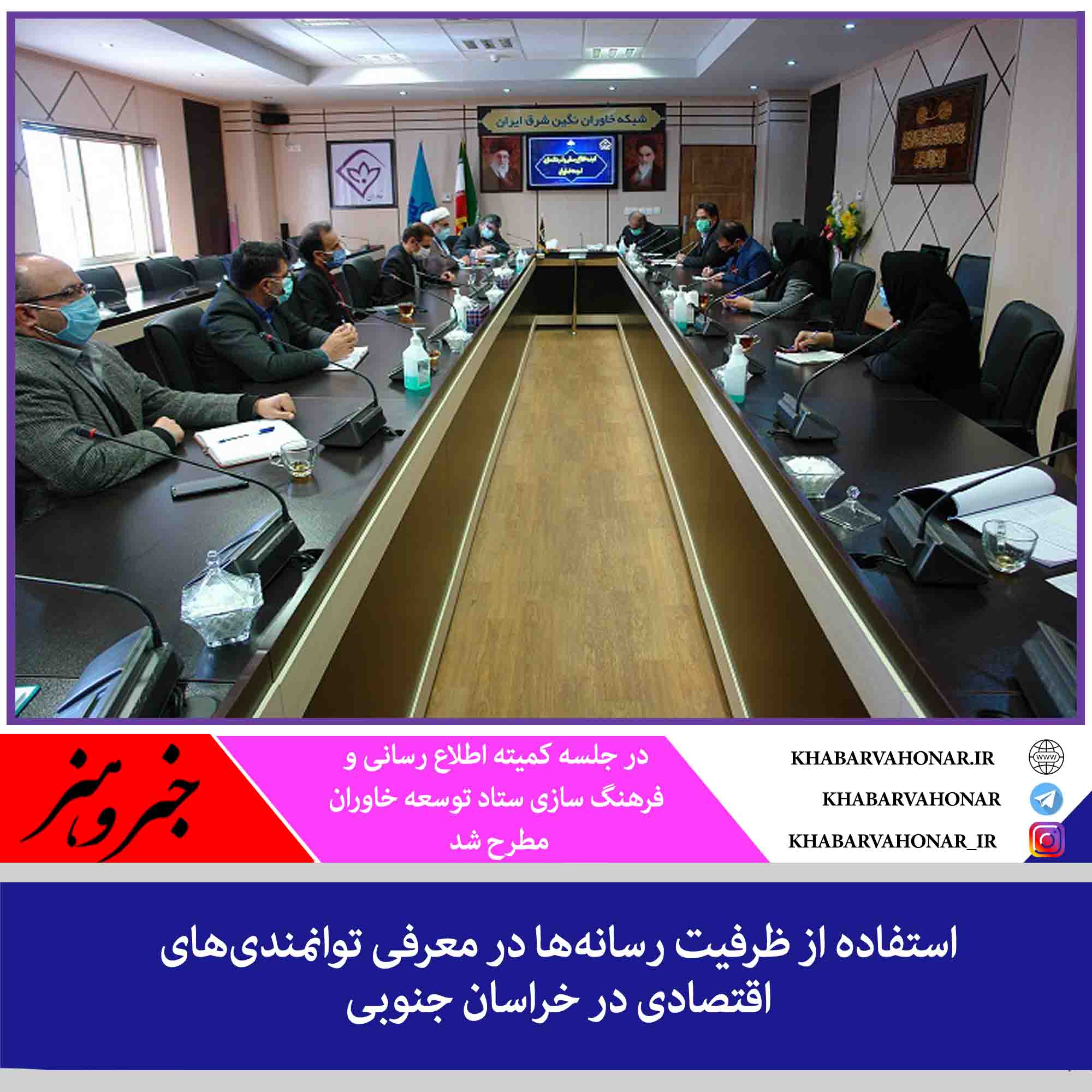 امروز در جلسه کمیته اطلاع رسانی و فرهنگ سازی ستاد توسعه خاوران بر کمک به فرهنگ سازی و تبیین رسانهای شاخصهای توسعه استان تاکید شد. آینه دار مدیر کل صدا و سیمای خراسان جنوبی در این جلسه گفت: باید از ظرفیت رسانه ملی و دیگر رسانههای خراسان جنوبی برای معرفی هرچه بیشتر توانمندیهای اقتصادی این استان استفاده شود.