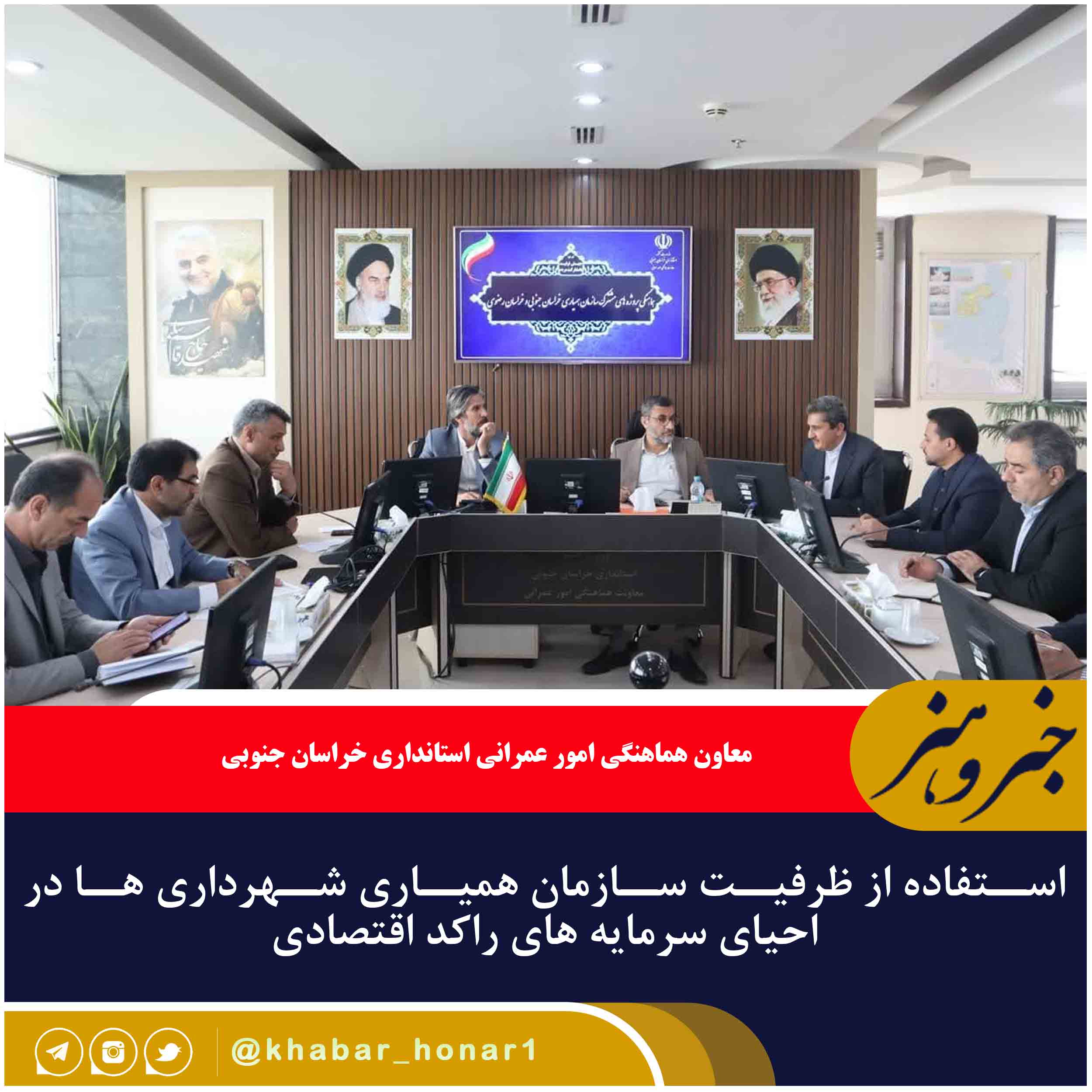?معاون هماهنگی امور عمرانی استانداری خراسان جنوبی گفت: از ظرفیت سازمان همیاری شهرداری ها می توان در احیای سرمایه های راکد اقتصادی استان استفاده کرد.