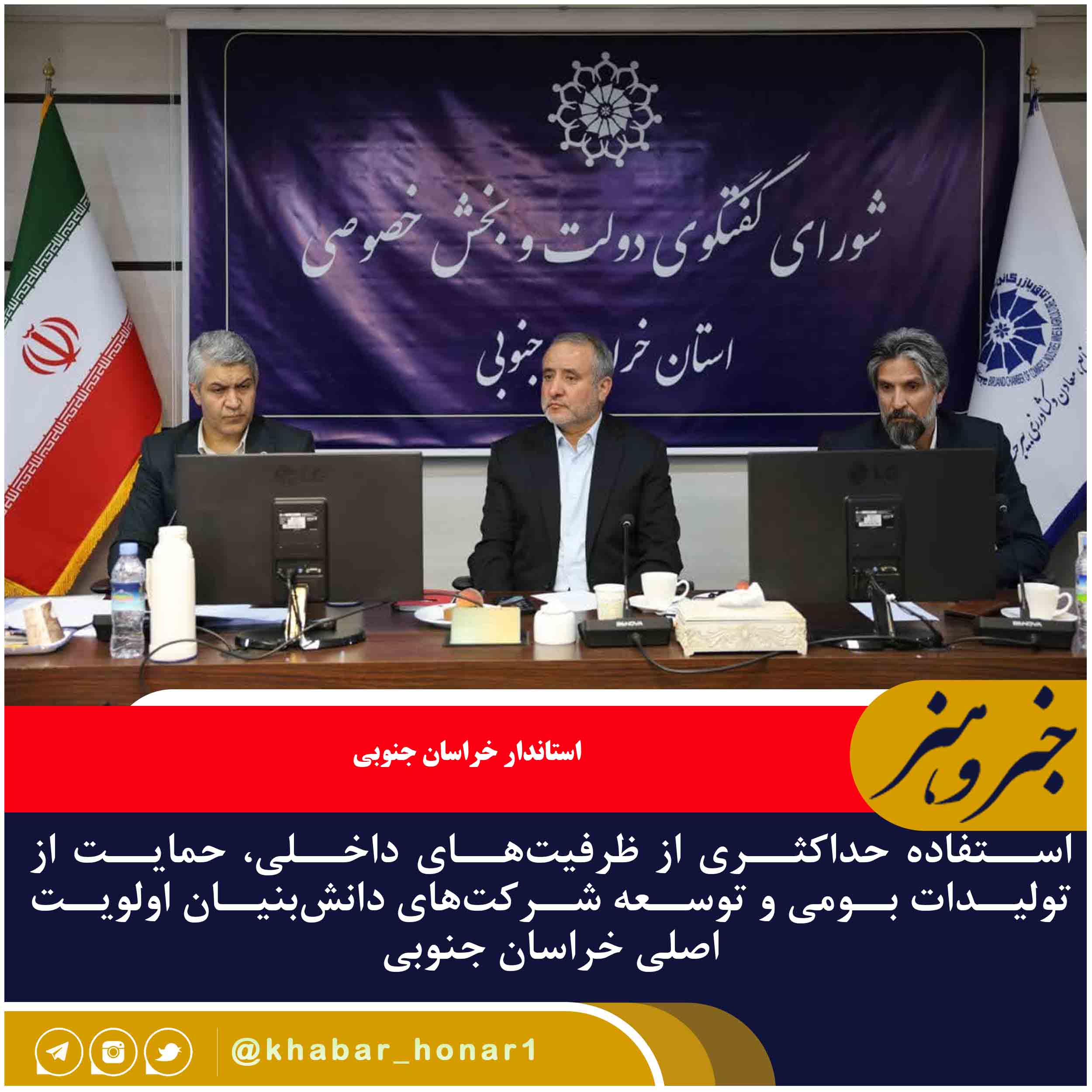 استاندار خراسان جنوبی با تأکید بر استفاده حداکثری از ظرفیتهای داخلی، حمایت از تولیدات بومی و توسعه شرکتهای دانشبنیان را اولویت اصلی استان دانست و آن را عامل مؤثر در کاهش بیکاری و تحقق توسعه پایدار عنوان کرد.